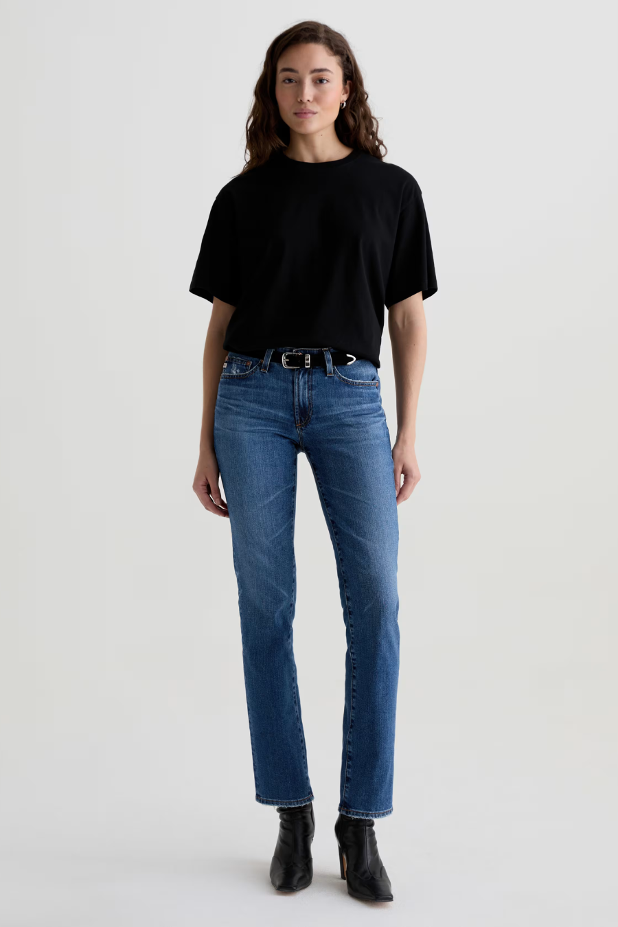 The Sandra is a low-rise straight jean. Crafted from Lead Denim, 11 Oz. for superior comfort and style. Designed with classic five-pocket styling and premium construction for everyday wear. Shown here in 15 Years Prague, AG-ed™ to emulate 15 years of wear—offering rich character and an authentically broken-in feel.