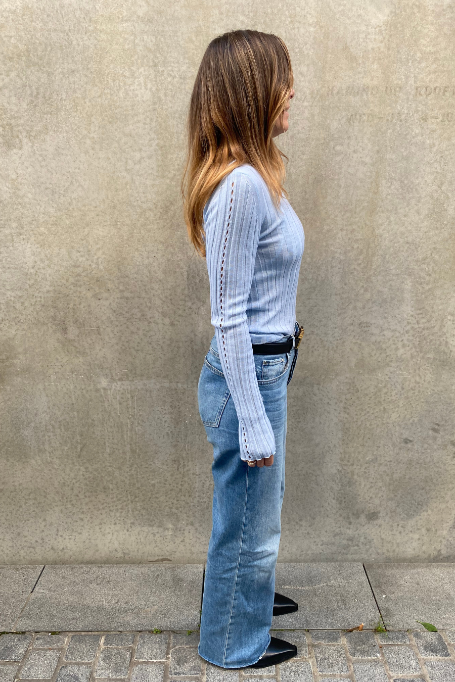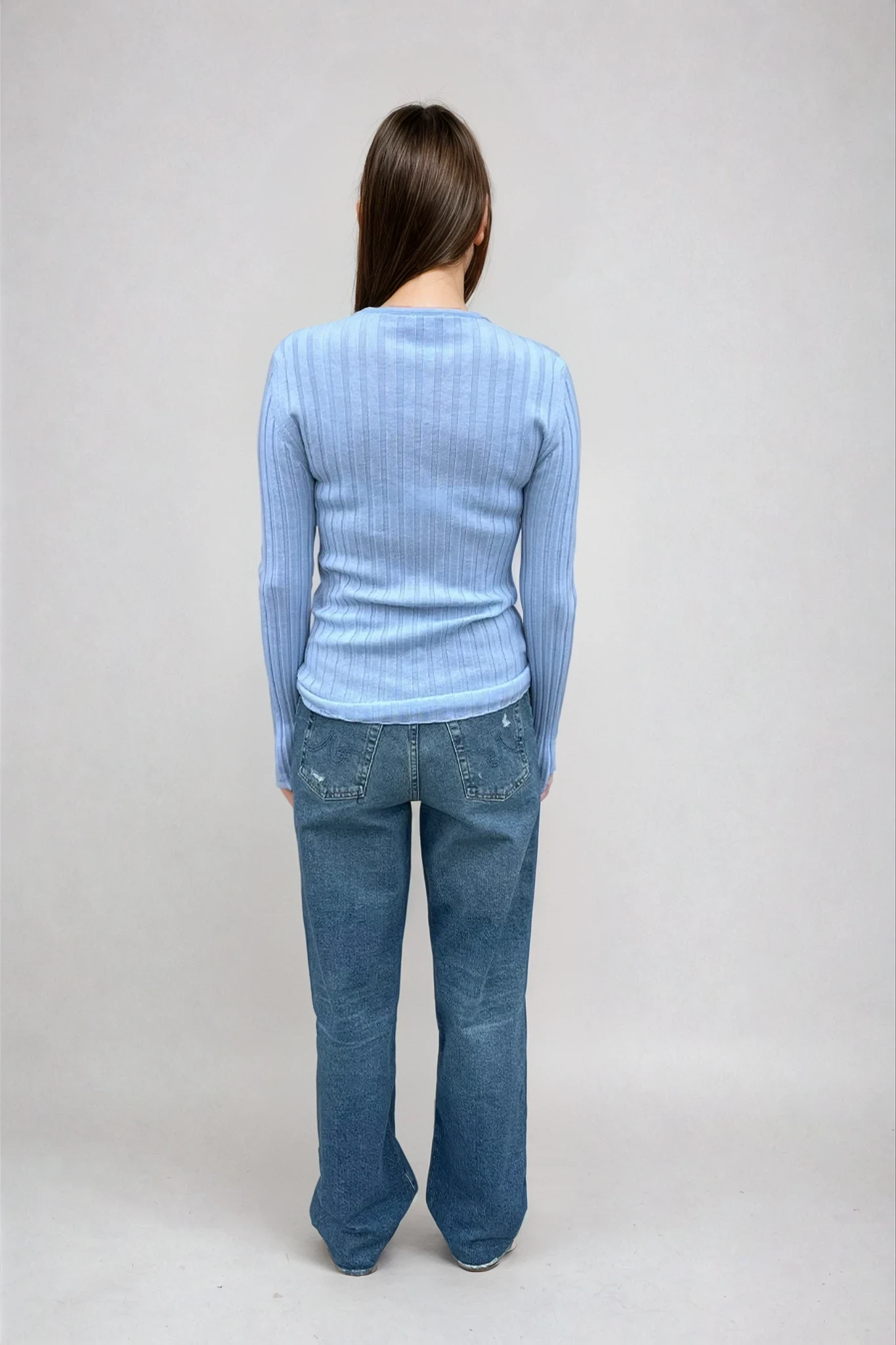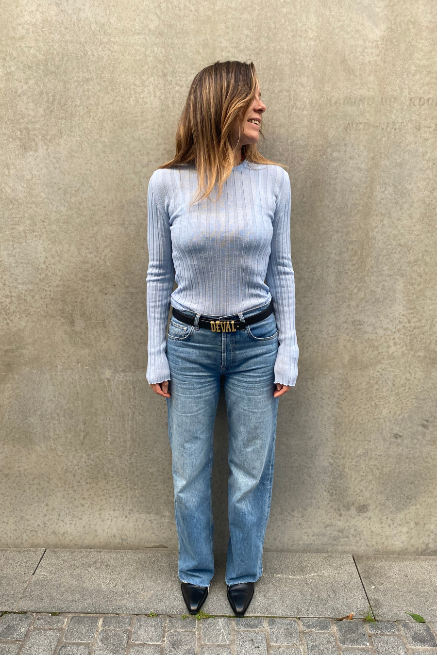 The Sara Long Sleeve is a stunning fitted rib top made from merino wool. Featuring picked arm detail and beautiful colour matches on the front and back, this piece is perfect for pairing with denim jeans, shorts or Leather Pants.