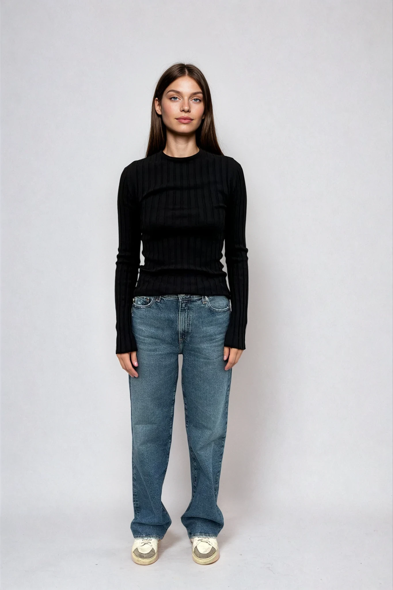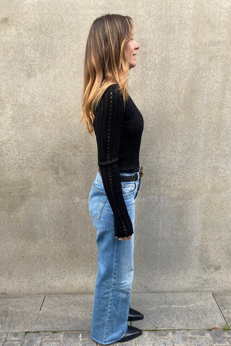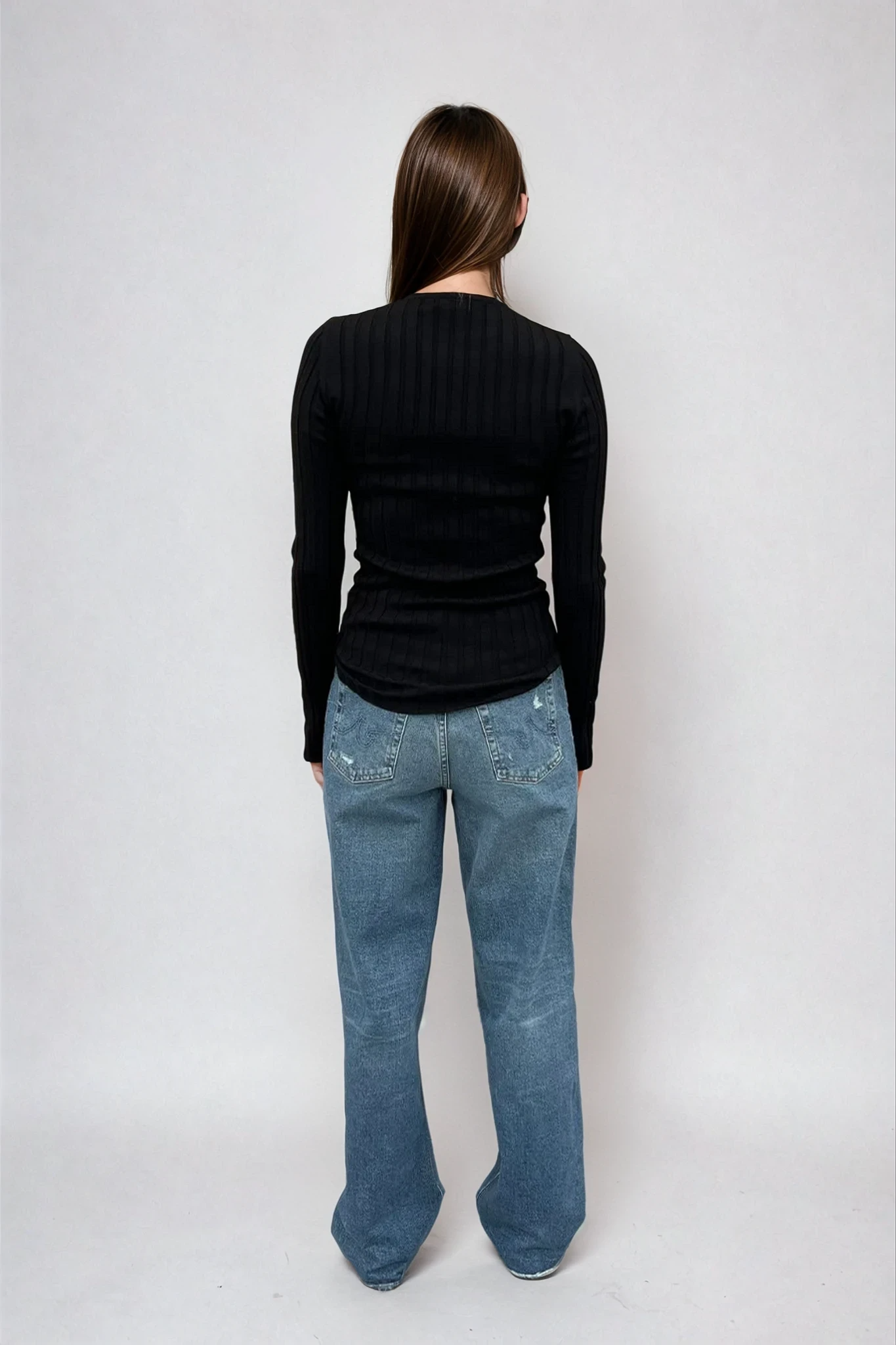 The Sara Long Sleeve is a stunning fitted rib top made from merino wool. Featuring picked arm detail and beautiful colour matches on the front and back, this piece is perfect for pairing with denim jeans, shorts or your Devàl Rider Leather Pants x