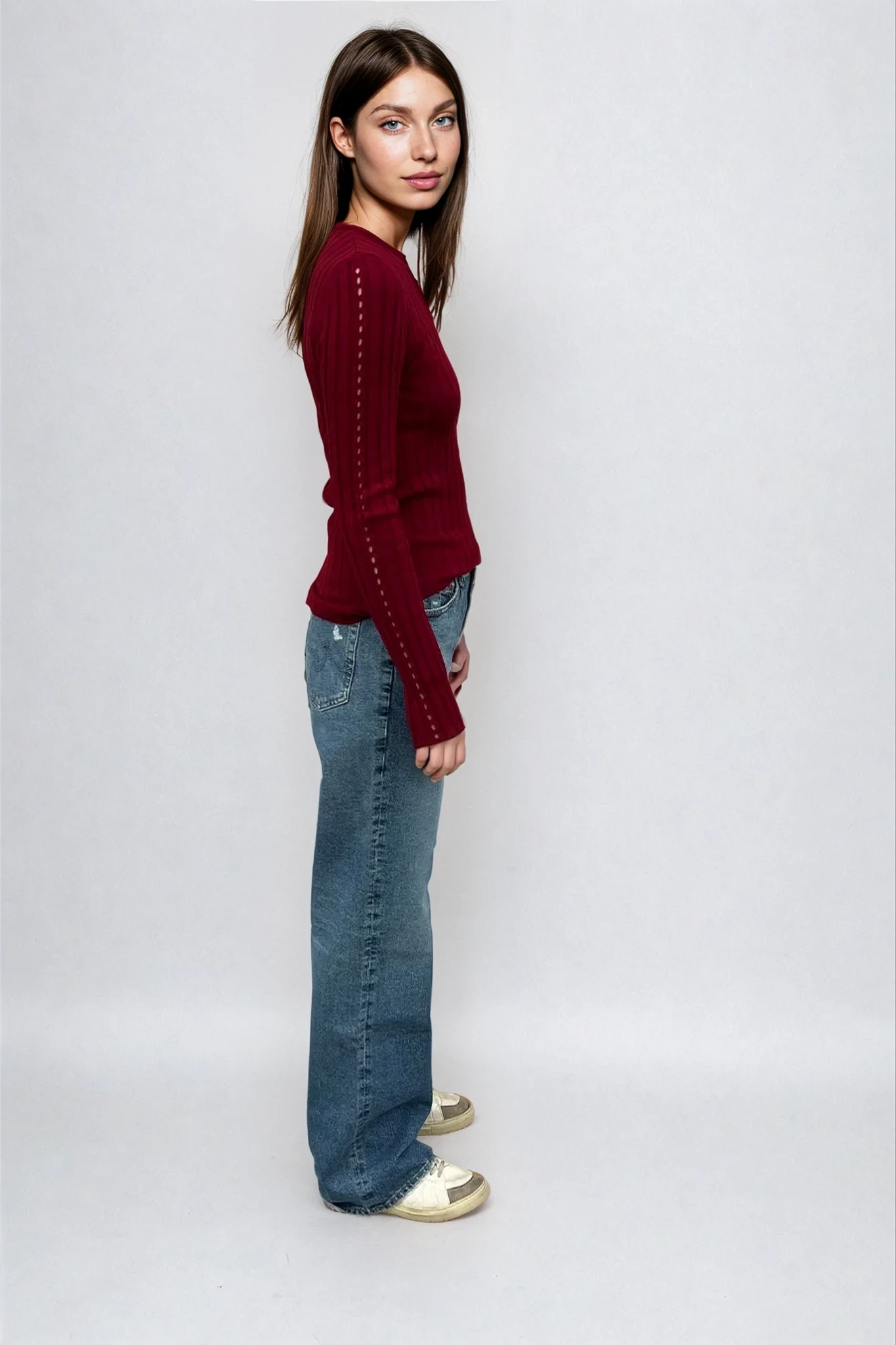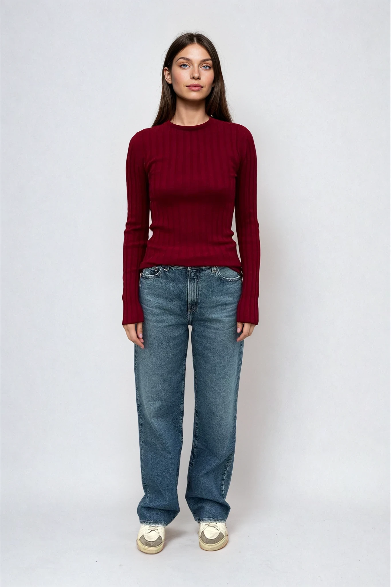 Sara Long Sleeve Rib Top Cherry