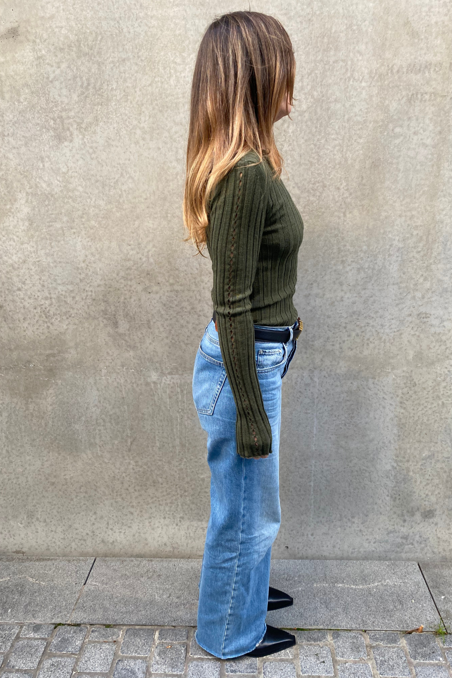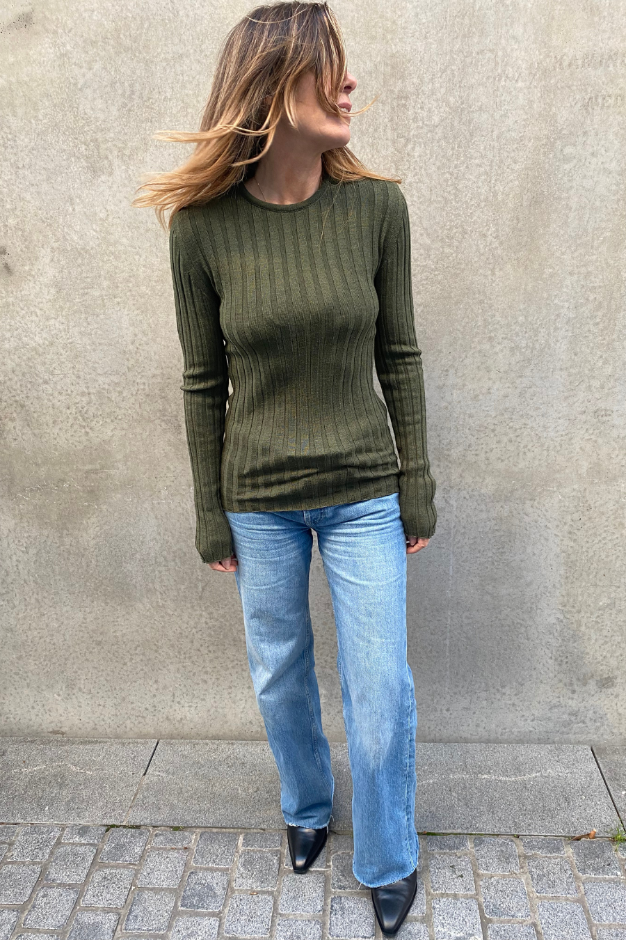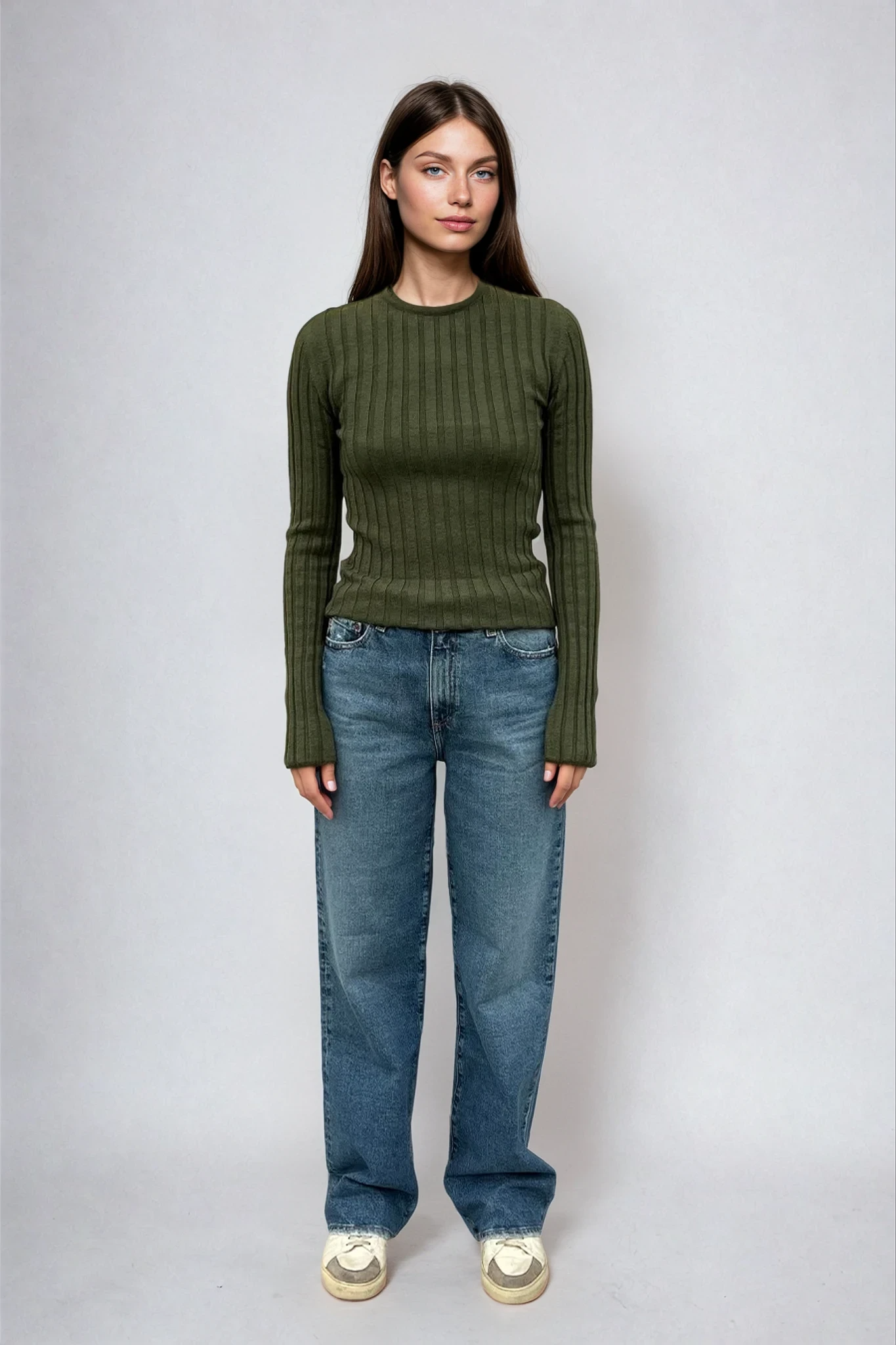 Sara Long Sleeve Rib Top Olive