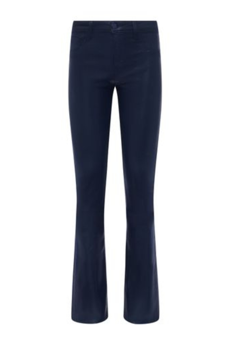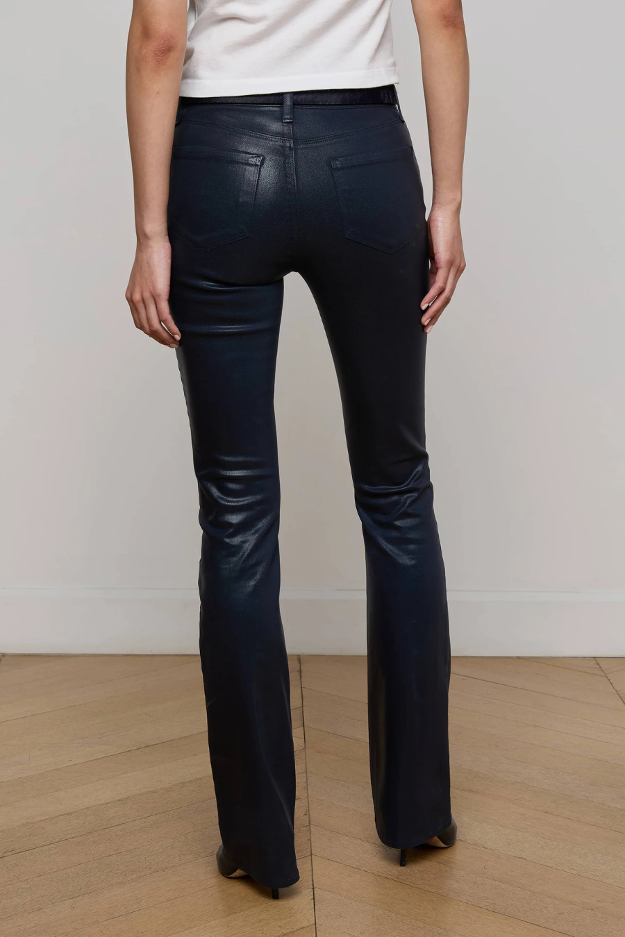 A sleek, slim bootcut, fitted through the hips and knee. A contoured waistband securely hugs the natural waist without gaping. In a deep midnight coated fabrication.
