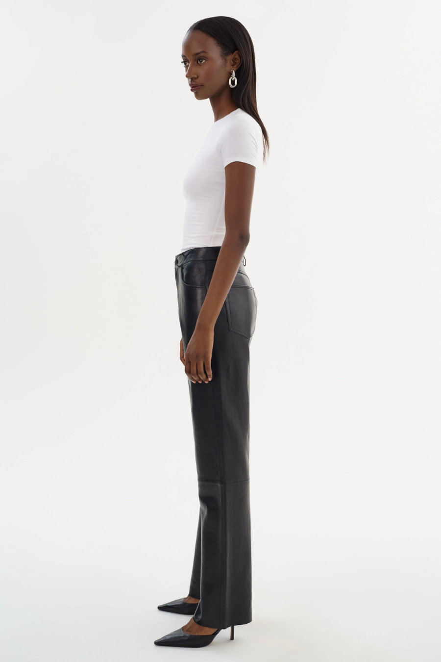 Refined and modern, the SHANNON Leather Pants blend expert tailoring with the luxurious touch of leather. With a chic straight-leg cut, these pants transition effortlessly from professional daywear to sophisticated evening attire. The buttery-soft leather exudes understated elegance, serving comfort and style as a quintessential piece for the cooler months.