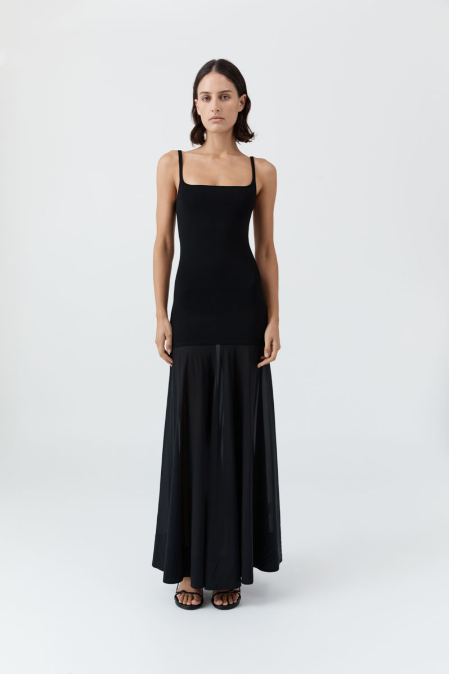 The Sheer Silk Circle Hem Dress combines structure and fluidity, featuring a fitted knit bodice that flows into a full circle silk skirt, falling gracefully to a maxi length. With a clean square neckline and lightweight feel, the Sheer Silk Circle Hem Dress a versatile design that transitions effortlessly from day to evening.