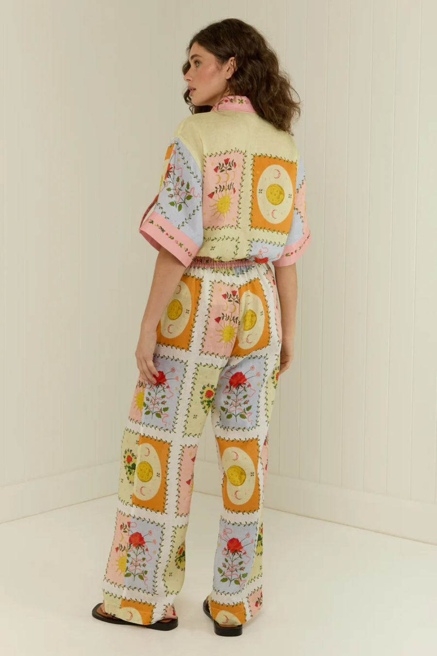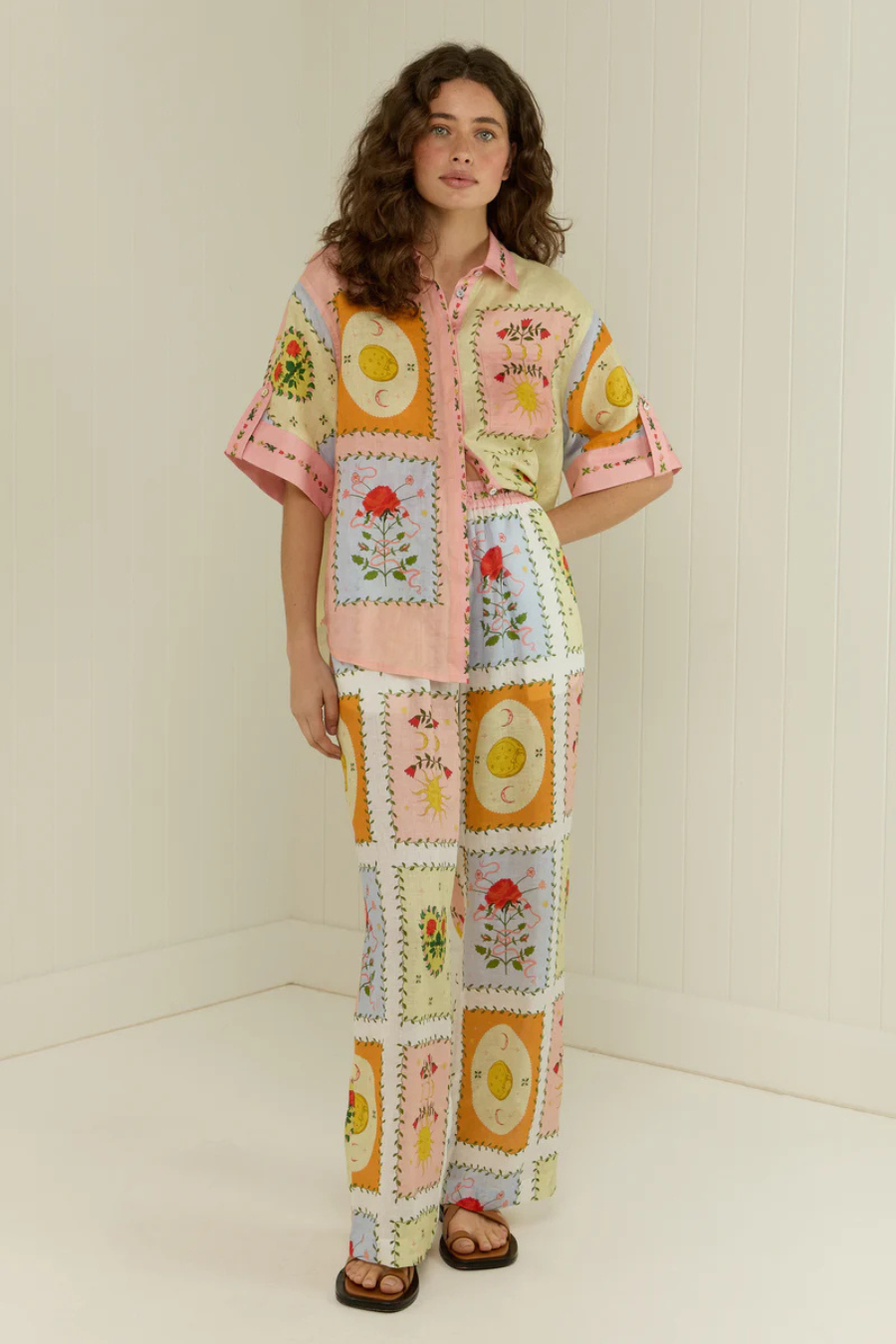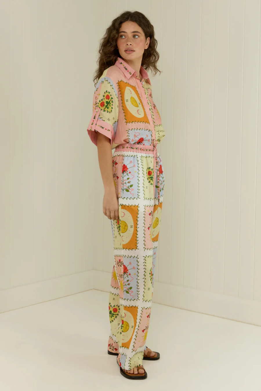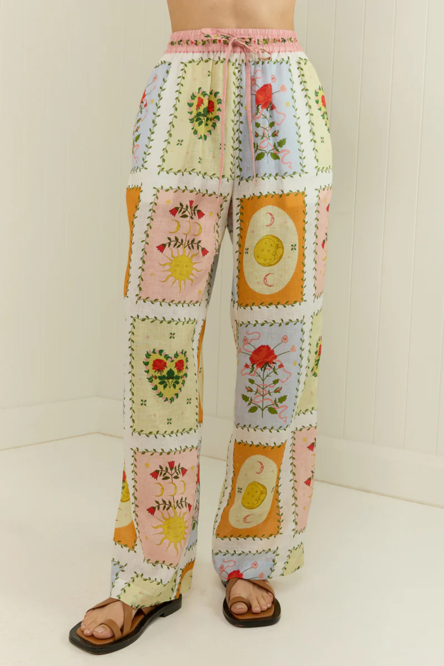 The Siesta Pants in our exclusive Siesta Tile print are crafted in a premium linen. The Siesta pants feature an elasticised waistband with a functional drawstring tie, side pockets and a straight cut leg. The Siesta Pants are a relaxed fit and are designed to be paired back with the Siesta Shirt.