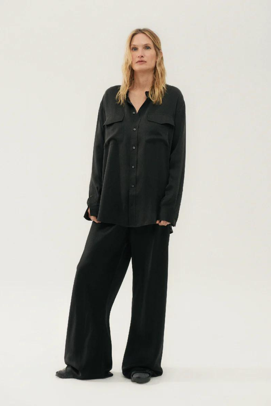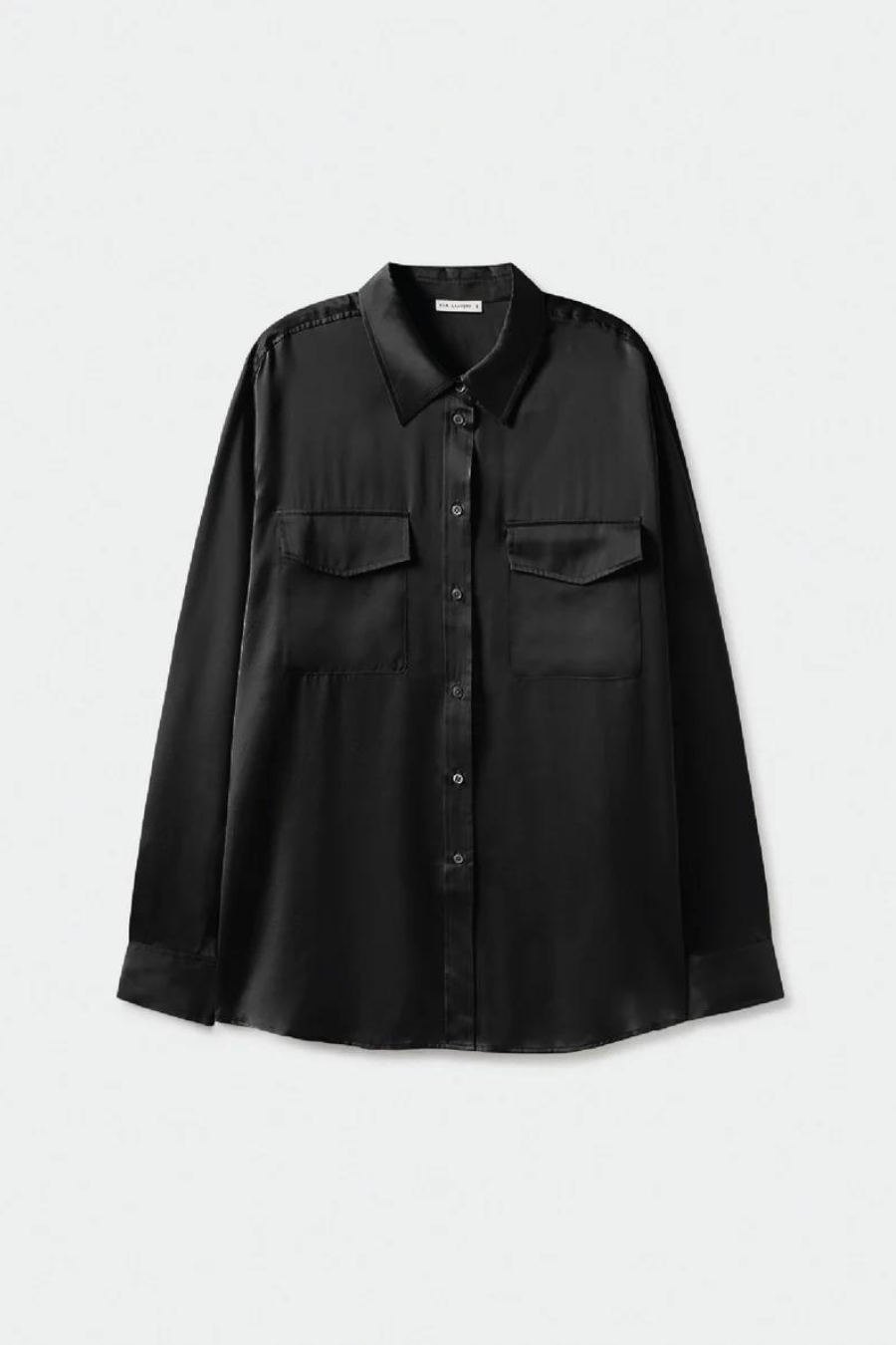 Designed to echo an original menswear style, cut from a glossy sandwashed silk, this everyday shirt looks great half-tucked into pants or left loose over our Bias Cut Pant. The relaxed fix is paired with a button-down front and utility pockets to create the versatility needed in everyday life.