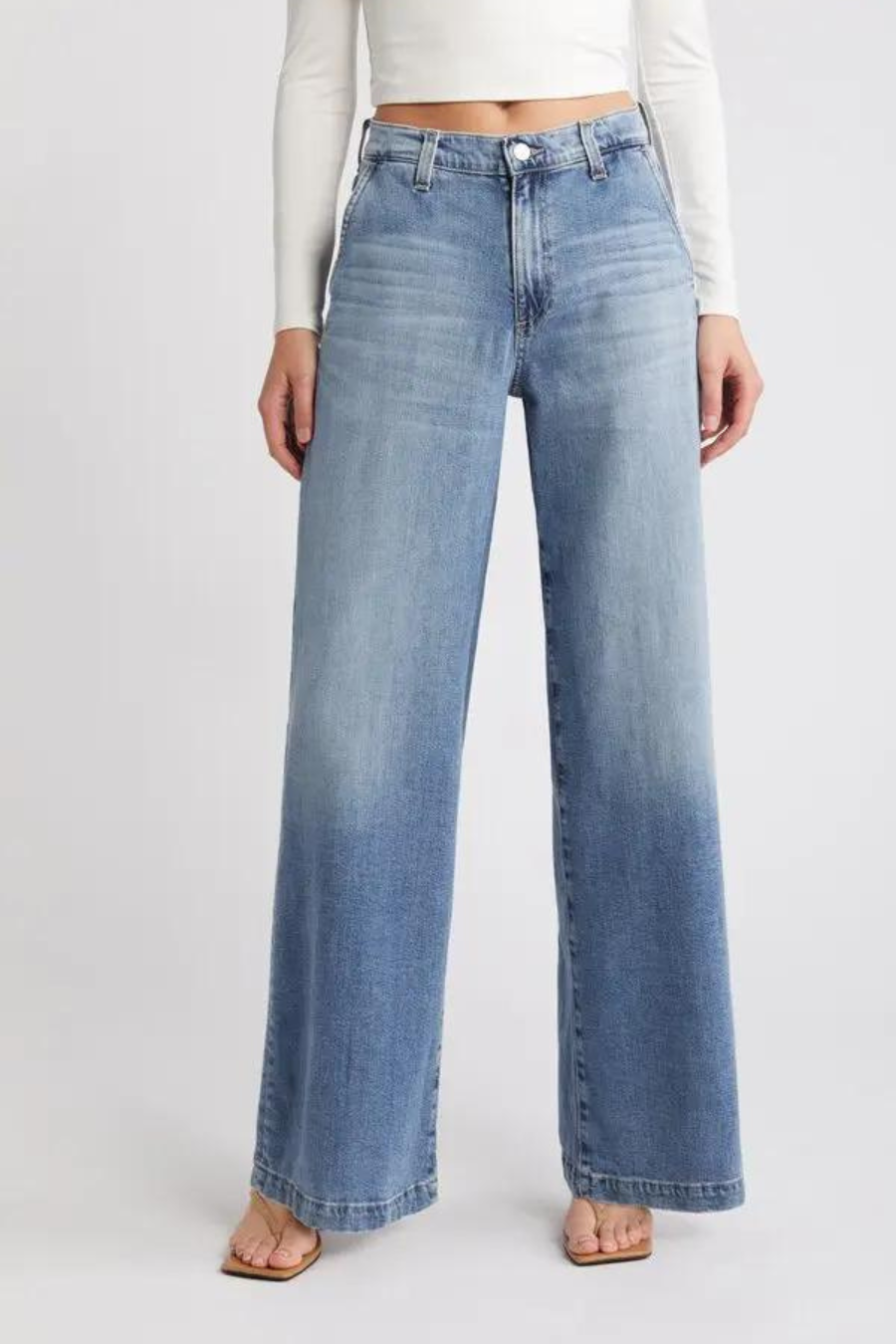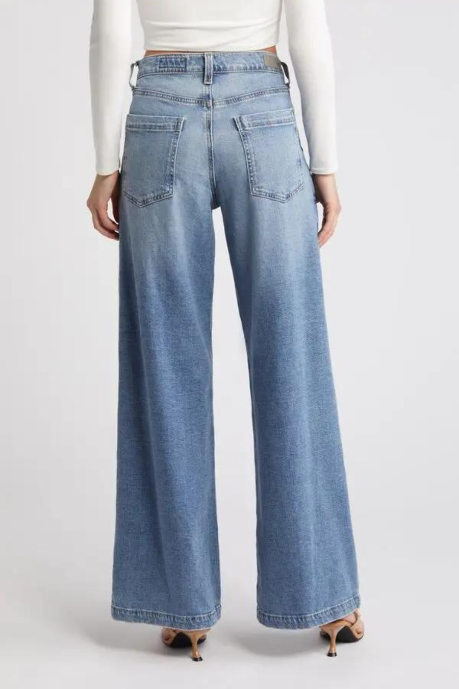 Stella is a low-slung denim palazzo pant in a light indigo wash with a faded finish. Designed to be worn lower on the waist, the style has classic five-pocket construction and a super-wide cut through the legs. These wide-leg pants are crafted from 10 oz. Daytripper Stretch Denim for a soft, comfortable feel and lightweight wear.