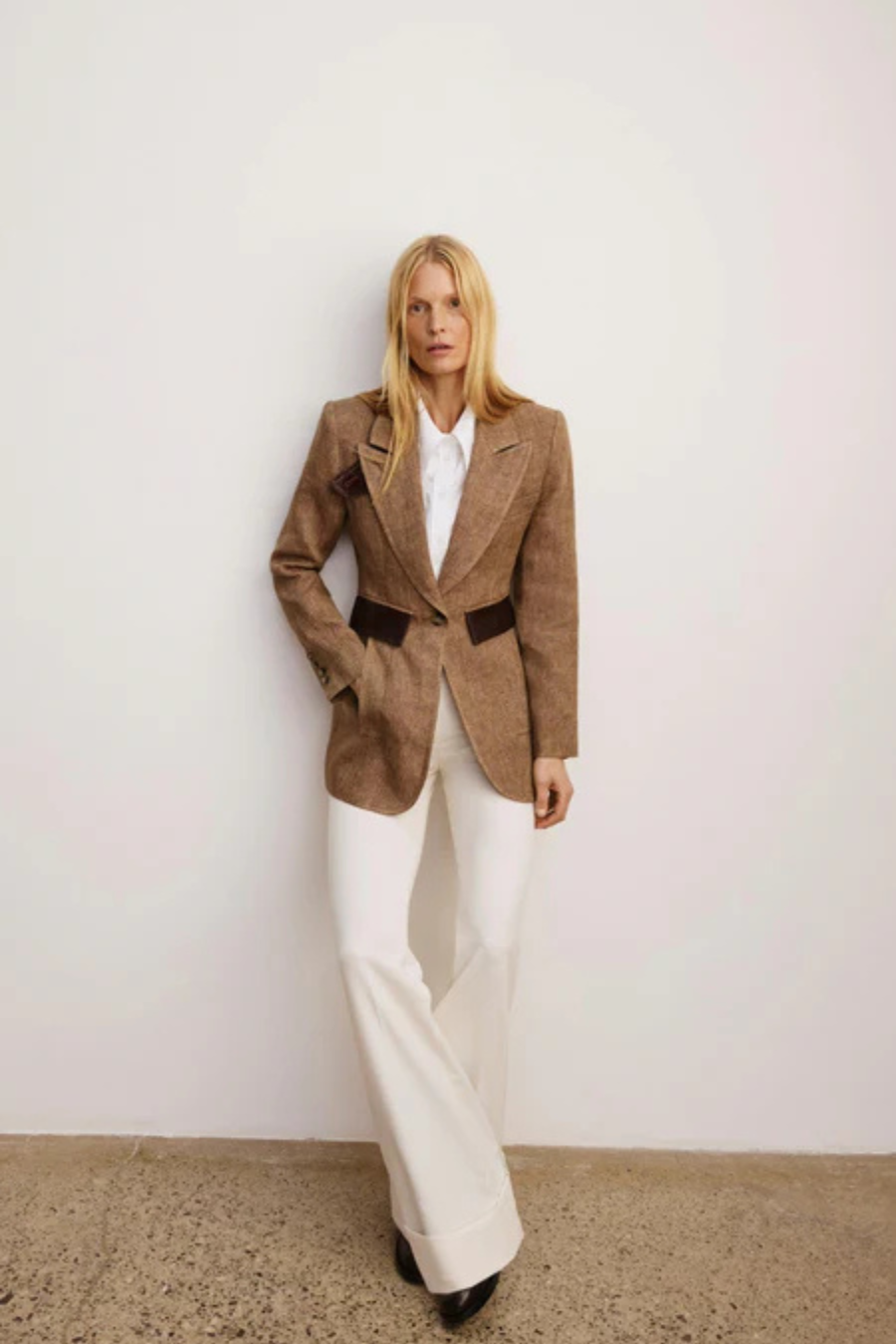 The Tailored Boyfriend Blazer reimagines menswear tailoring through a feminine lens, blending confident structure with subtle ease for a polished silhouette that never feels rigid. Perfect for the woman who wants a mensy look without being oversized.