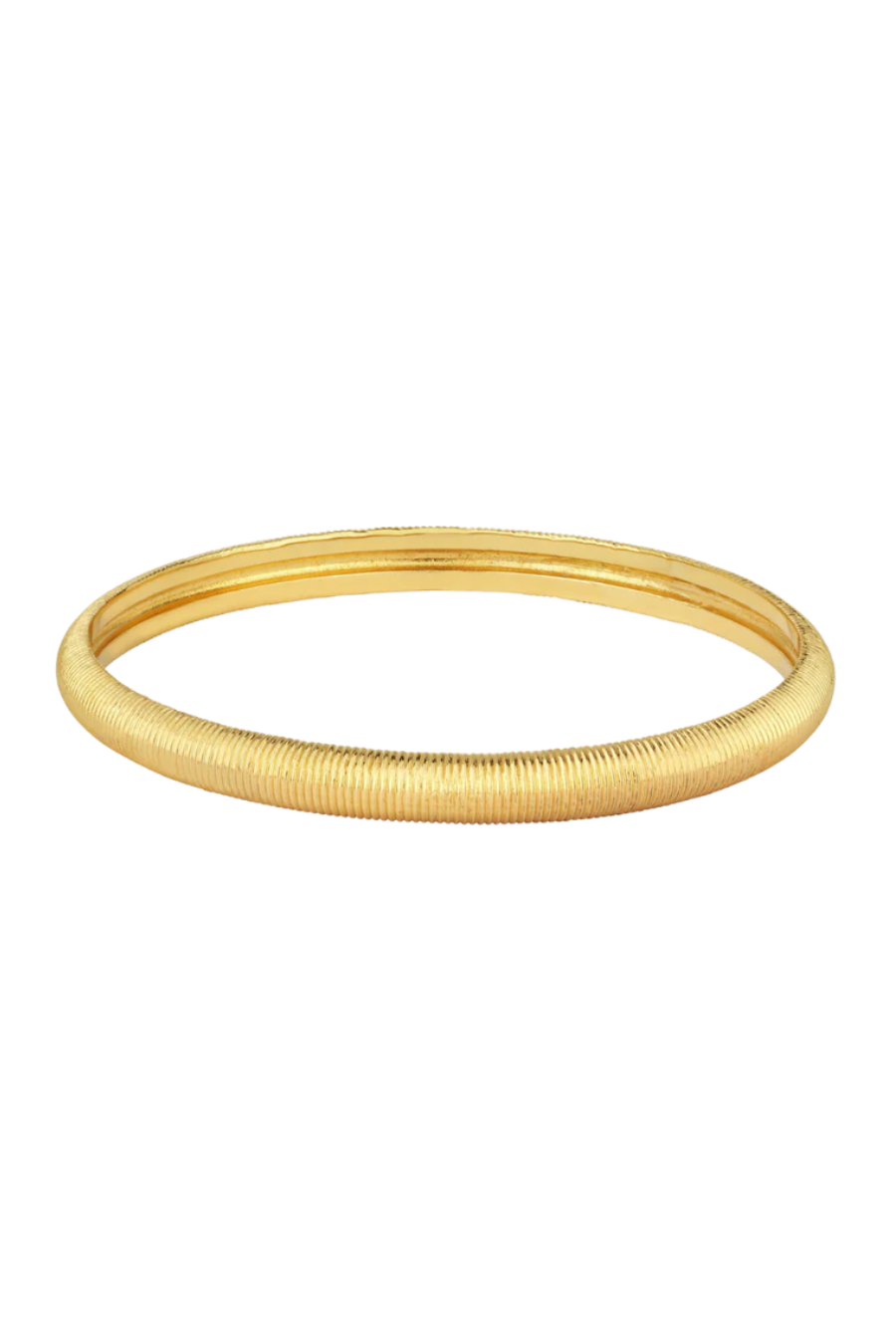 The Tasa bracelet pays homage to the glamour of these individuals in this time and place. With a rounded surface and textured front, this bracelet gently curves around the wrist.