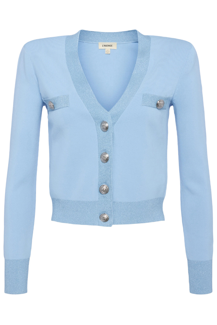 Taya V-Neck Cardigan Blue Fog Lurex/ Nickel
