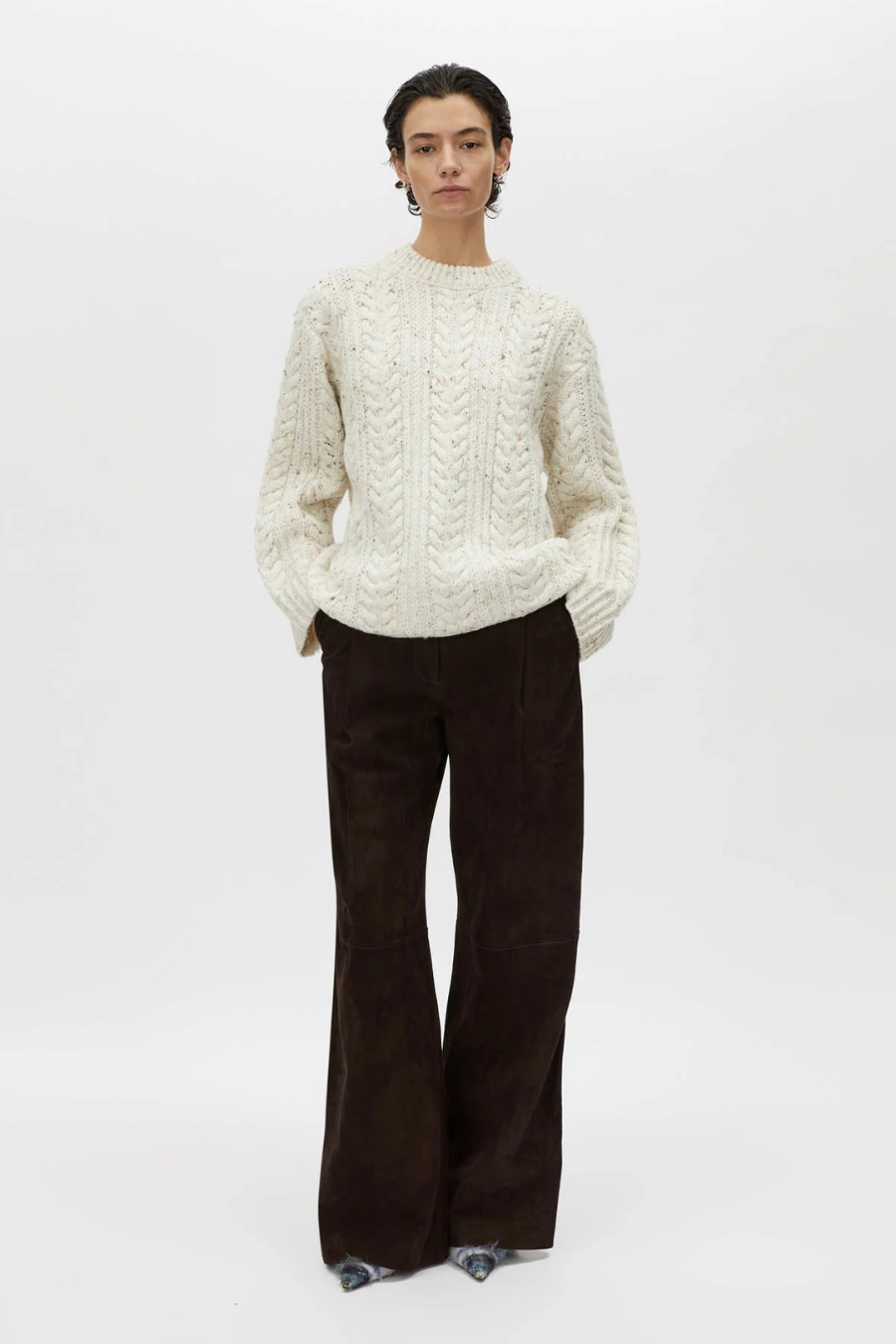The Terrazzo Sweater combines timeless design with a modern cable stitch pattern, offering a refined, elevated look. Featuring a ribbed collar, sleeve hem, and body hem, it brings a touch of precision to everyday wear. The half cardigan rib adds a contemporary twist, making this piece an essential for layering or wearing solo.