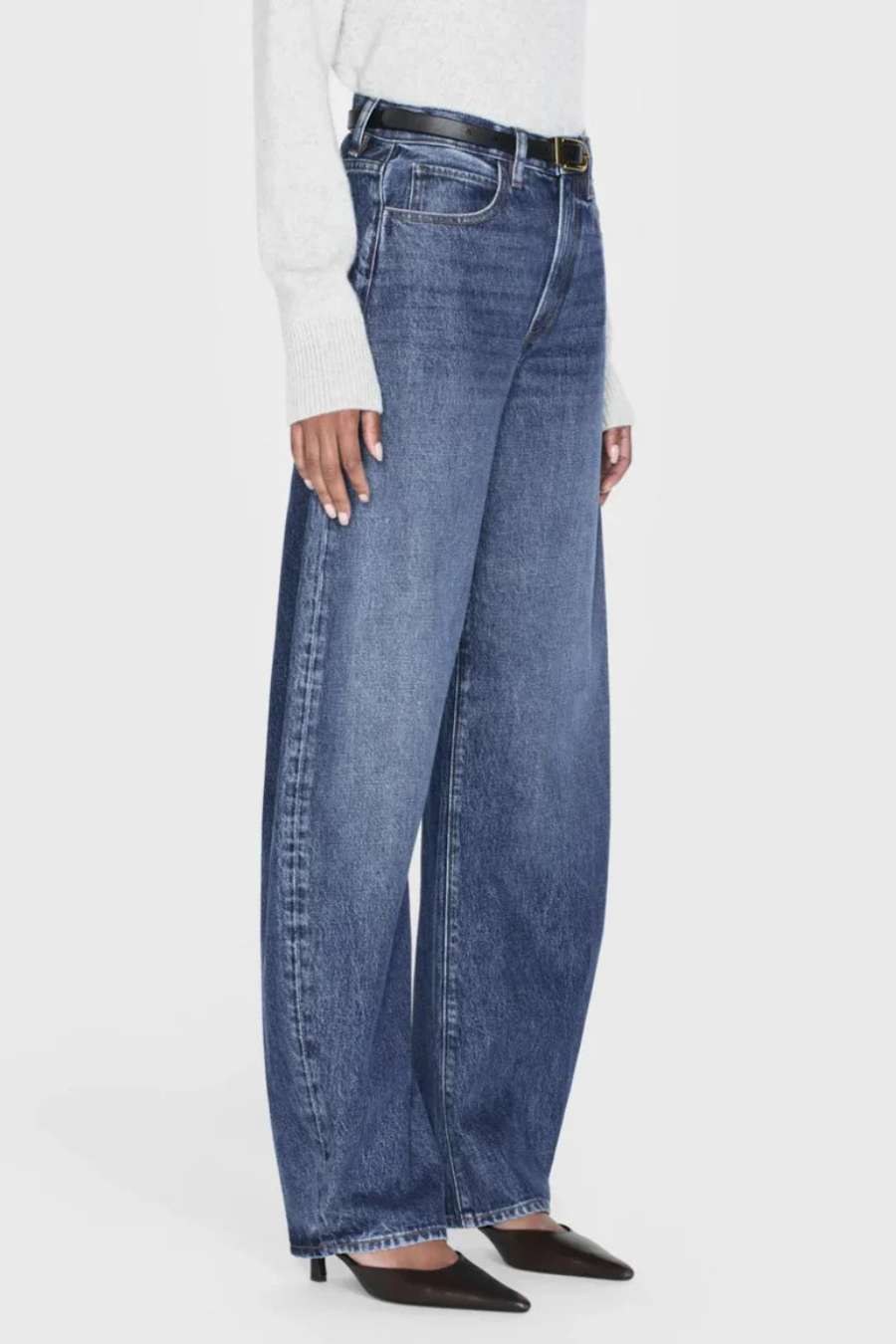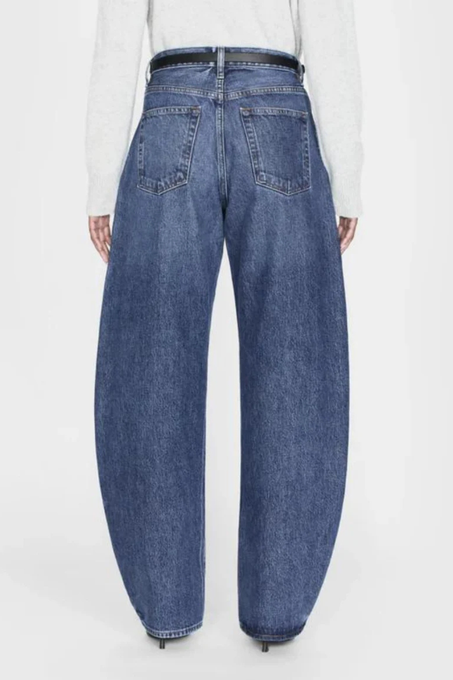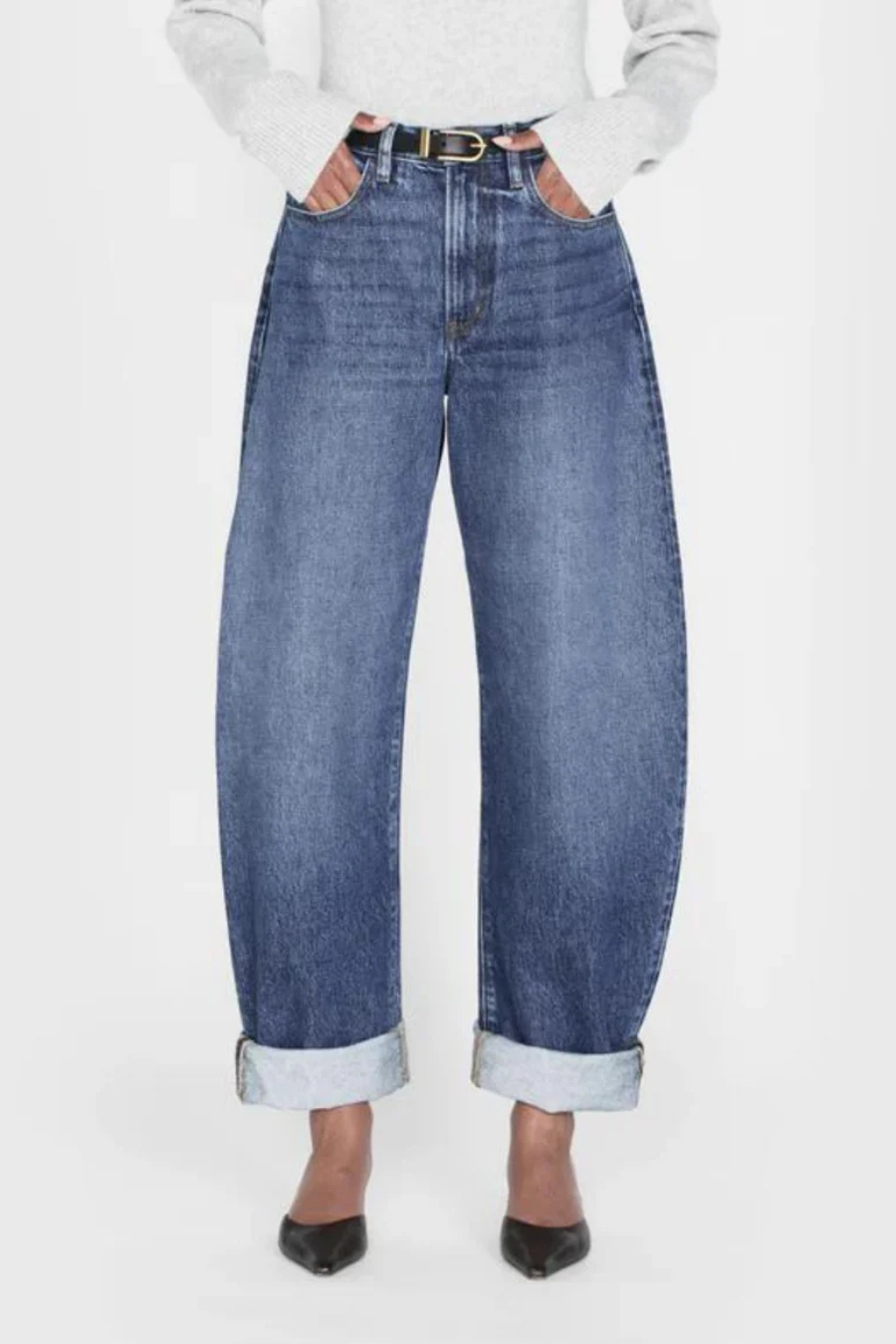 An exaggerated take on the trending barrel silhouette, this unique fit is your new closet necessity. With a flattering high rise, these jeans feature a curved outseam for a playful bubble effect. Designed to be worn cuffed and hit at the ankle, the 2.5" twice-rolled cuff can be unrolled for a longer, more dramatic inseam.