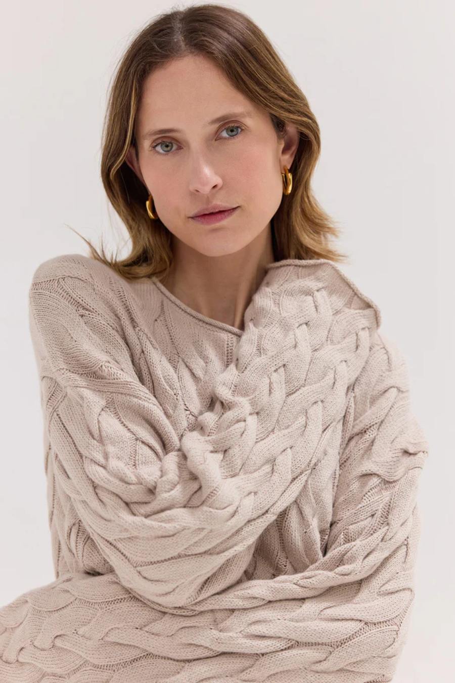 The Cable Knit Jumper River Pebble