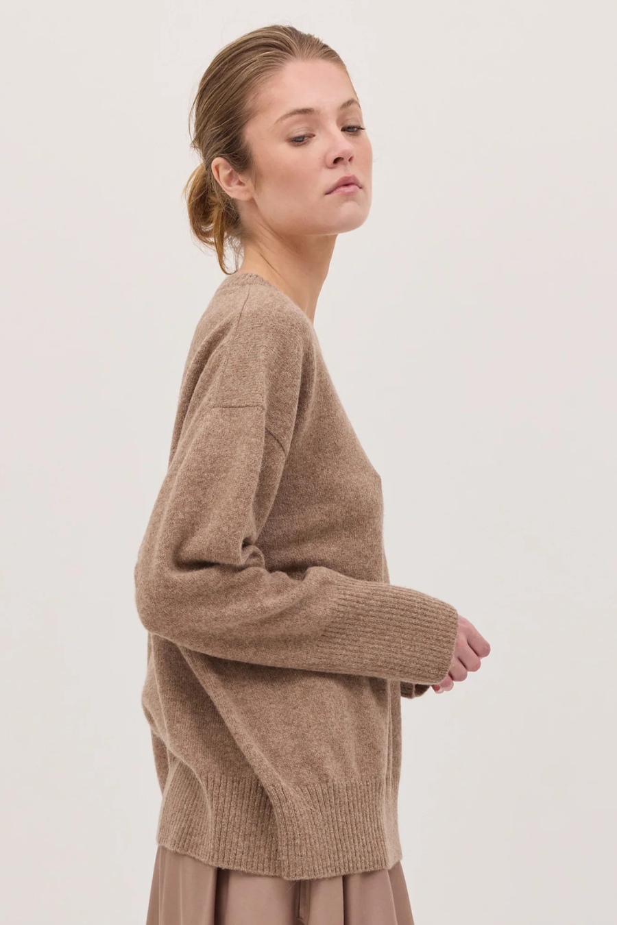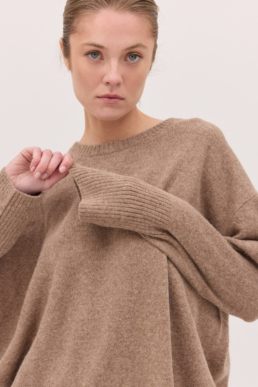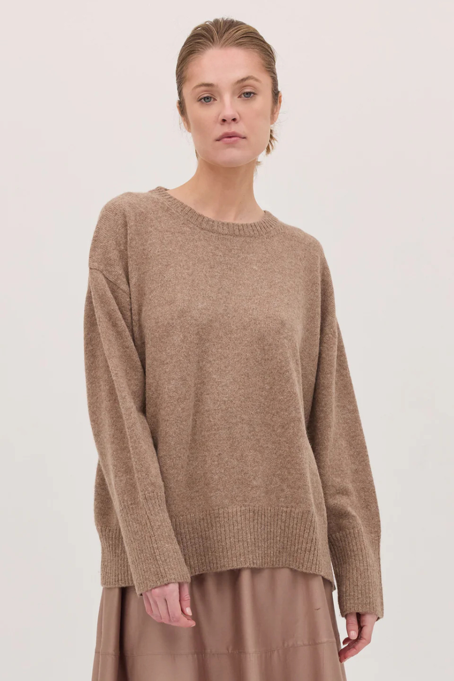 A timeless essential, our crew jumper is crafted from a luxurious blend of 90% alpaca and 10% cashmere. The yarn is undyed, with each piece showcasing the natural tones of the fibre—no dyes, no chemicals, just beautifully blended shades.
