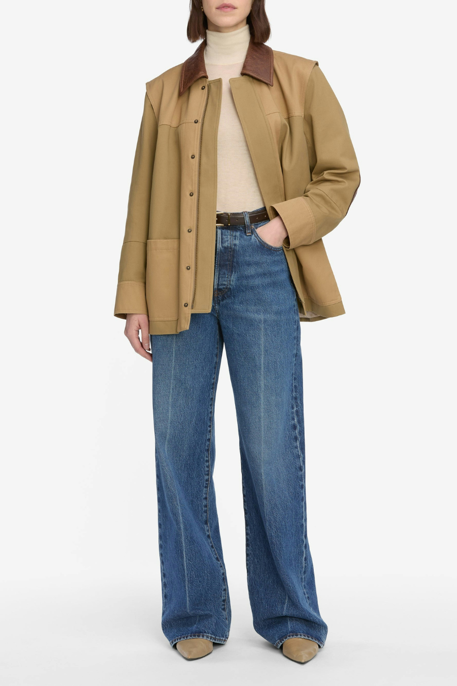 Your cleaned-up baggy jean for the week. This fresh new fit features a high rise and relaxed wide leg that takes you to the office, the classroom, and beyond. Made from 100% regenerative cotton.