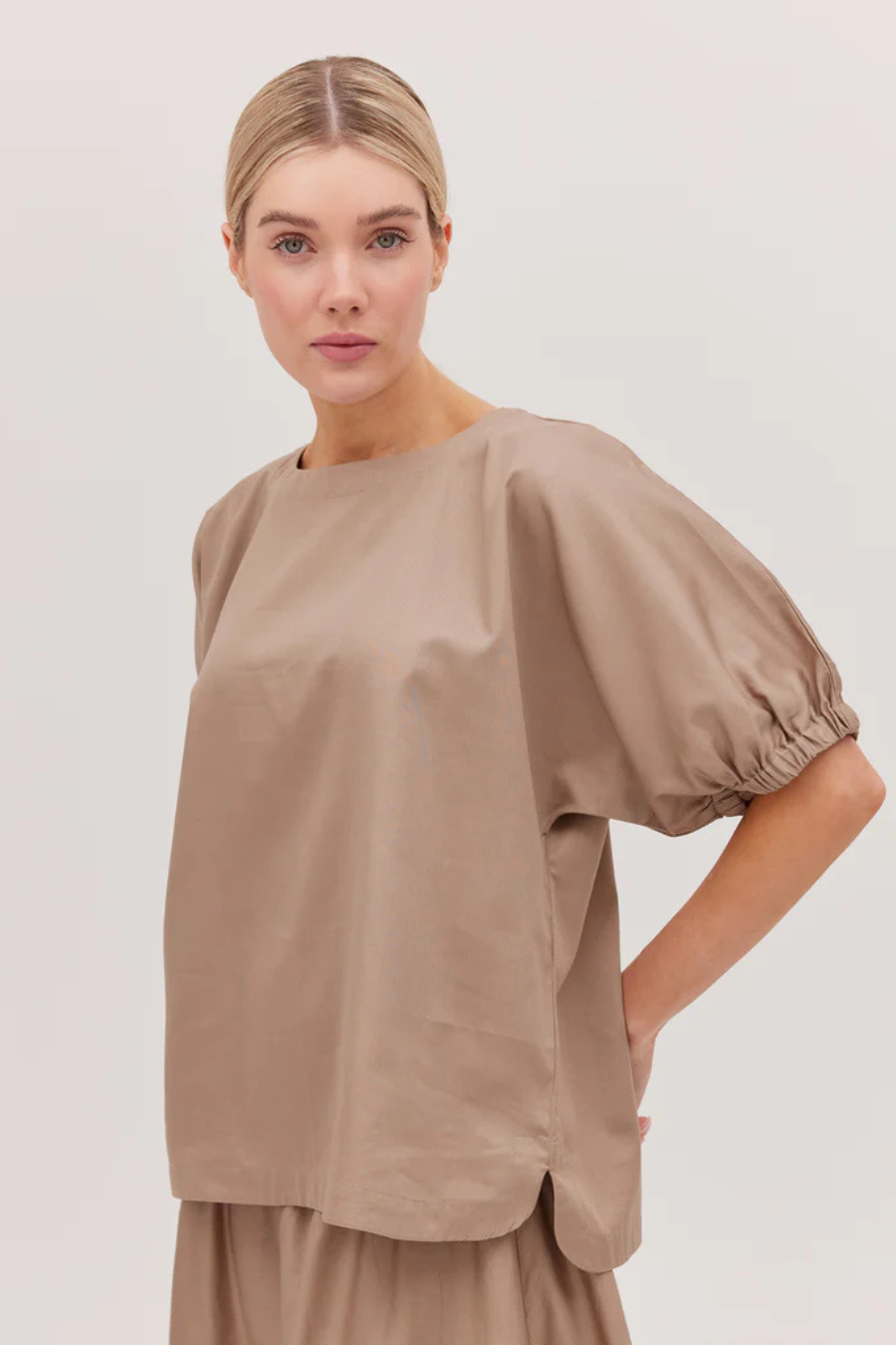 Introducing The Gathered Sleeve Top, the perfect summer top. Made from our signature giza cotton, this top features a rounded neckline and gathered short sleeves. This top is an easy go-to style that pairs perfectly with our maxi skirt.