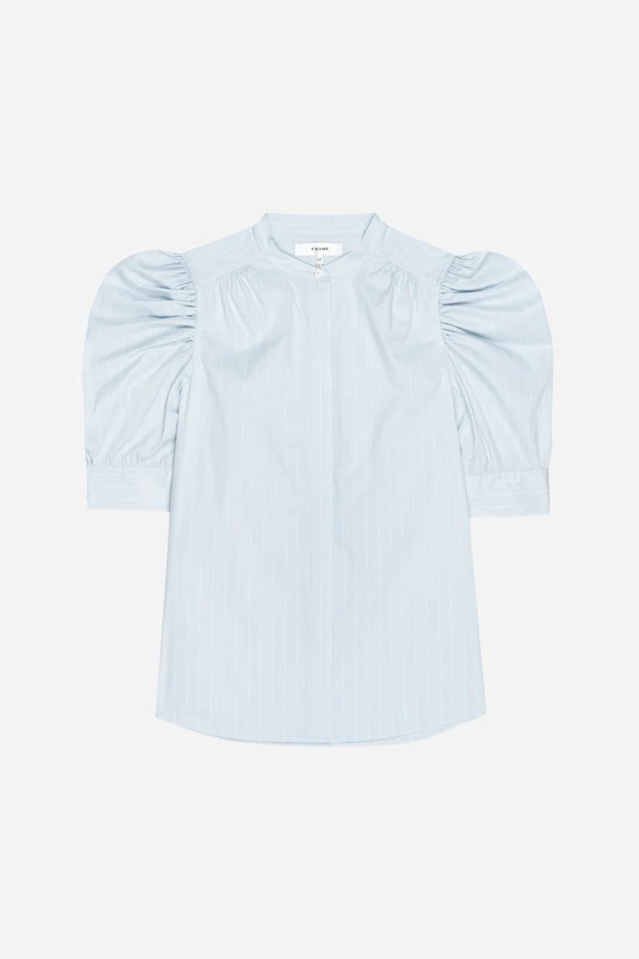 Shirred cotton enhances this expertly crafted top, lending added texture to an already eye-catching silhouette.