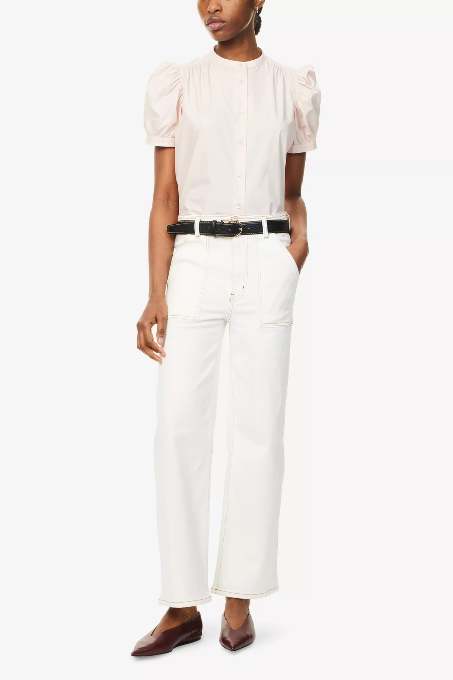 Shirred cotton enhances this expertly crafted top, lending added texture to an already eye-catching silhouette.