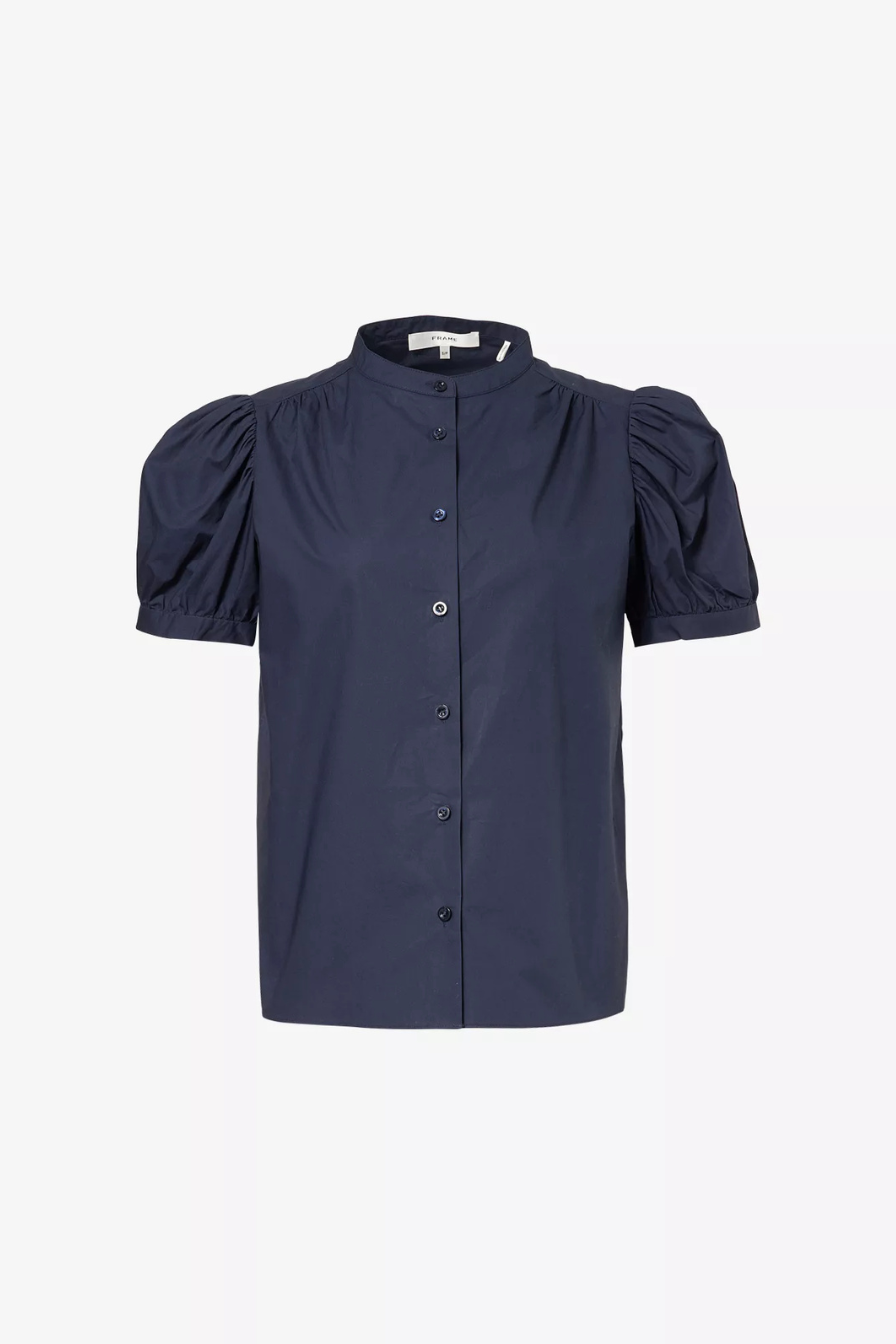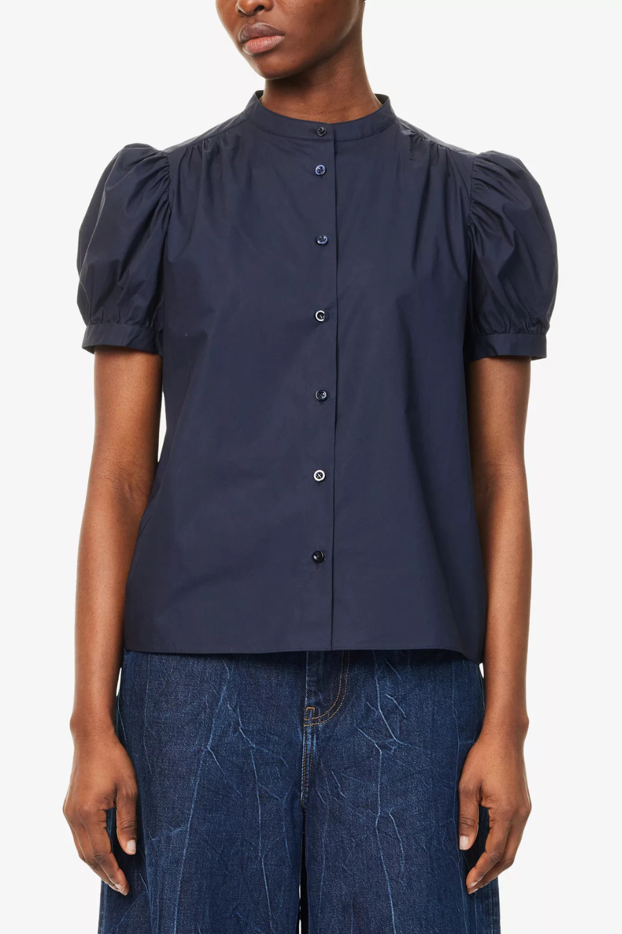 Shirred cotton enhances this expertly crafted top, lending added texture to an already eye-catching silhouette.