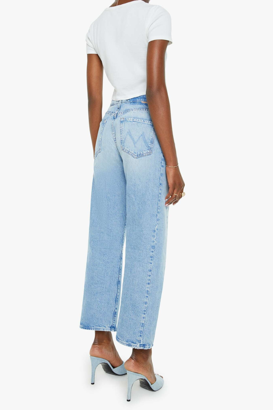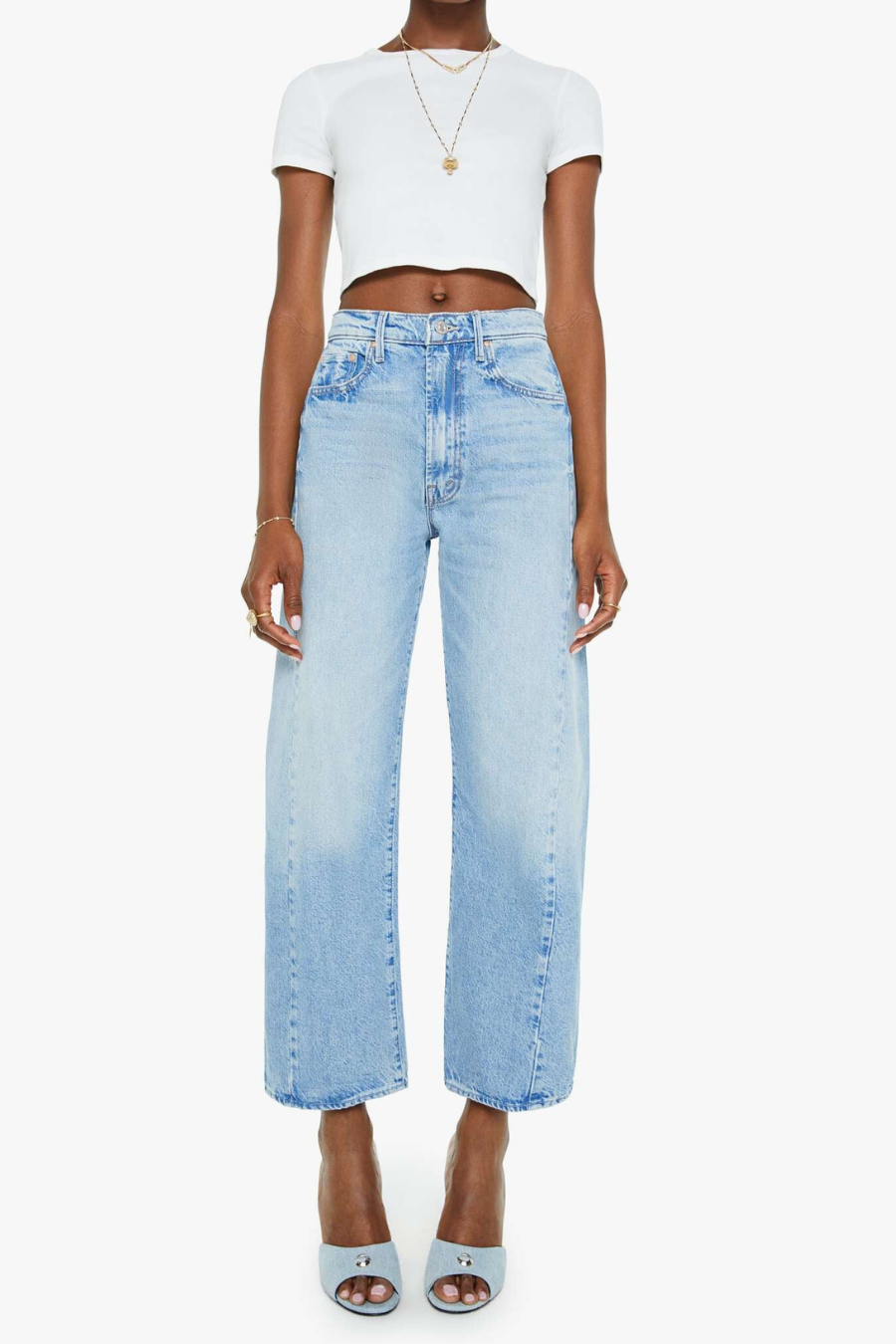 A super high-waisted jean with a wide, curved leg, an ankle-length inseam and a clean hem. Cut from 100% SUPERIOR denim, This Is How I Roll is a light blue wash with whiskering and fading at the knee.