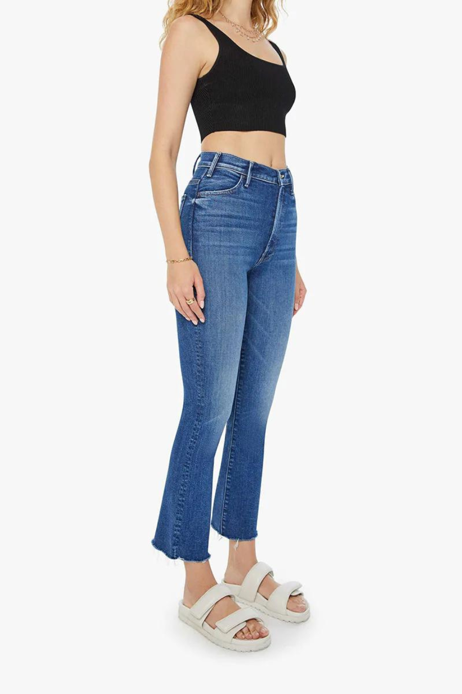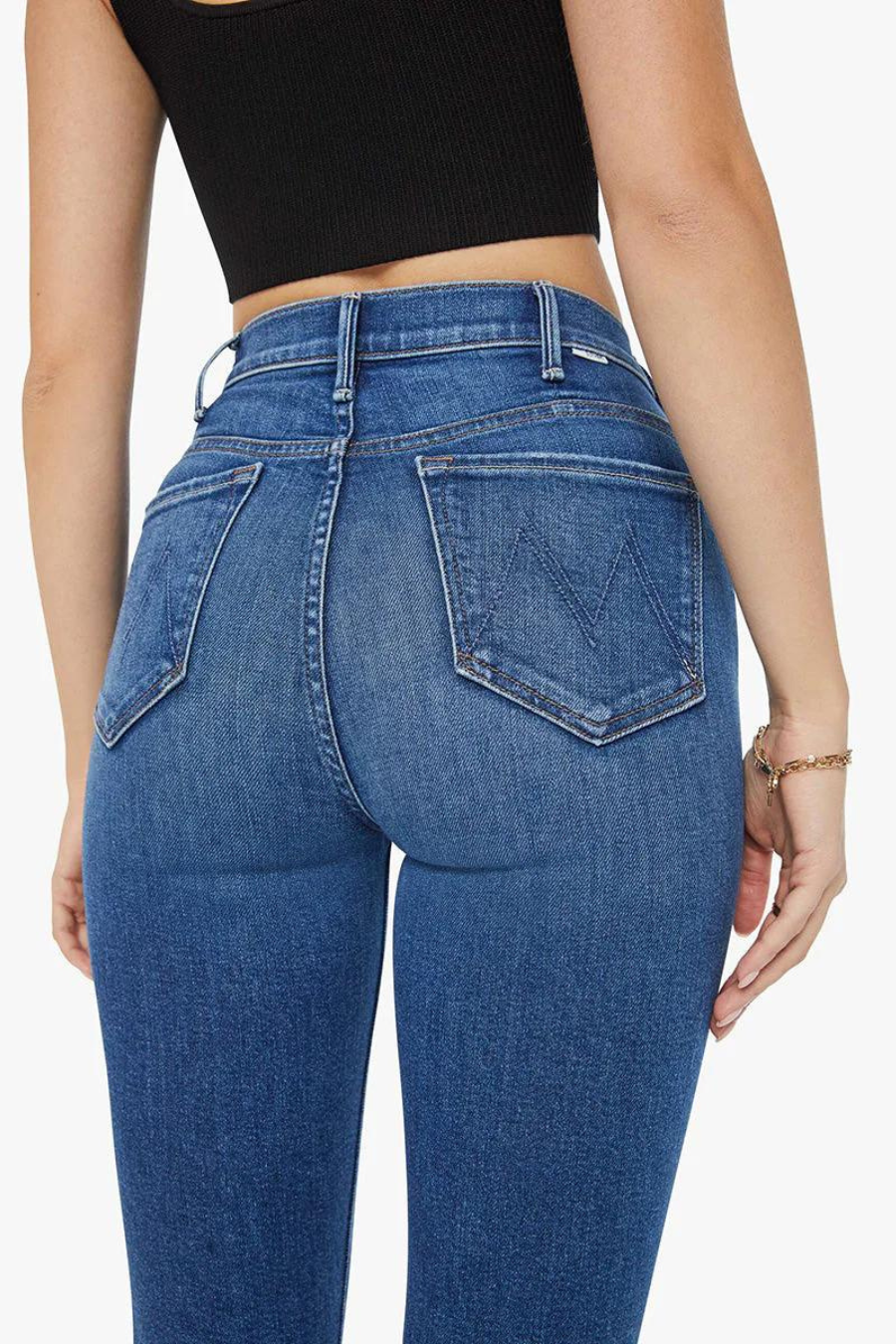 This bestselling high-rise flare has an ankle-length inseam and a raw hem. Cut from stretch denim, Grasping At Straws is a medium blue wash with subtle fading and whiskering.