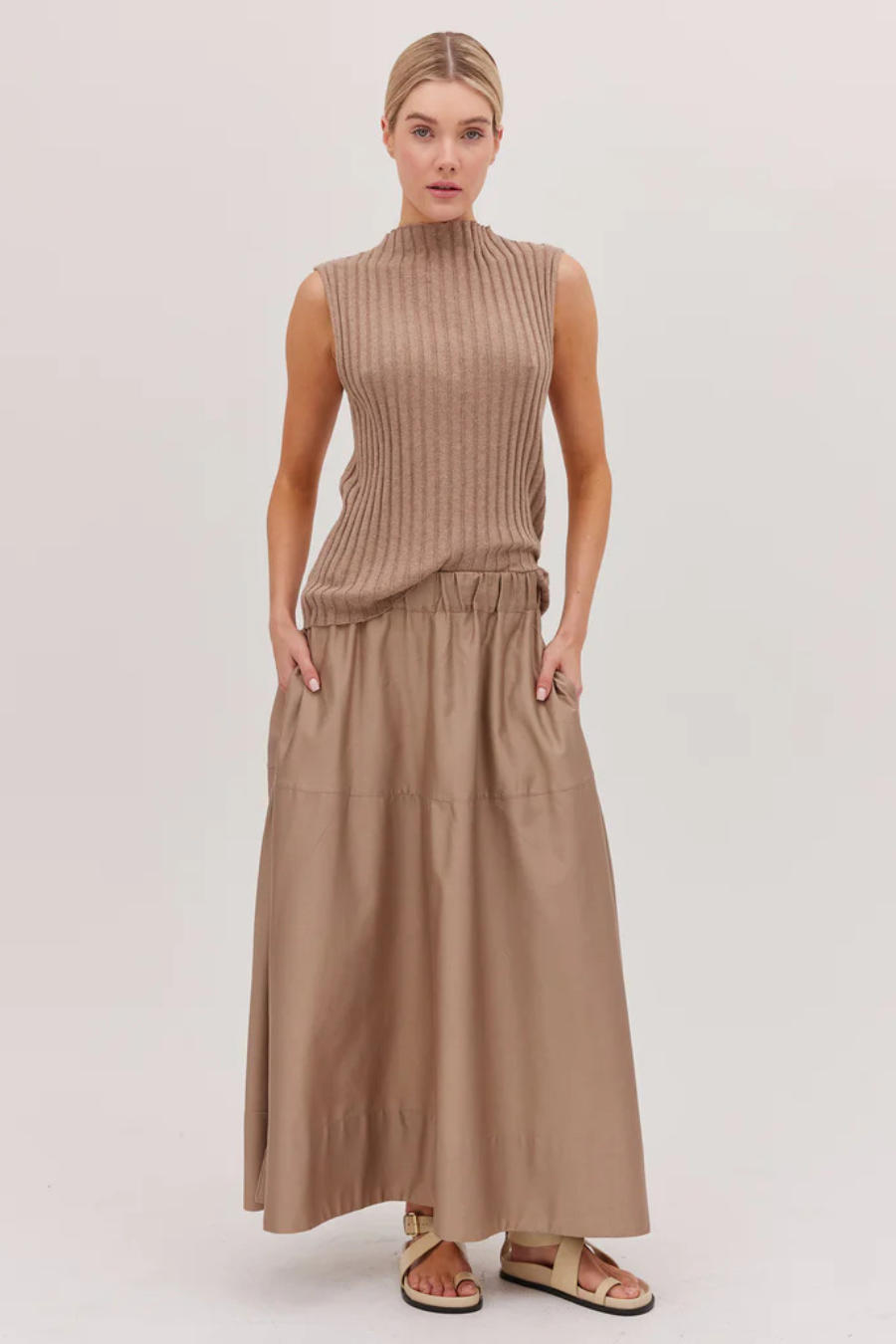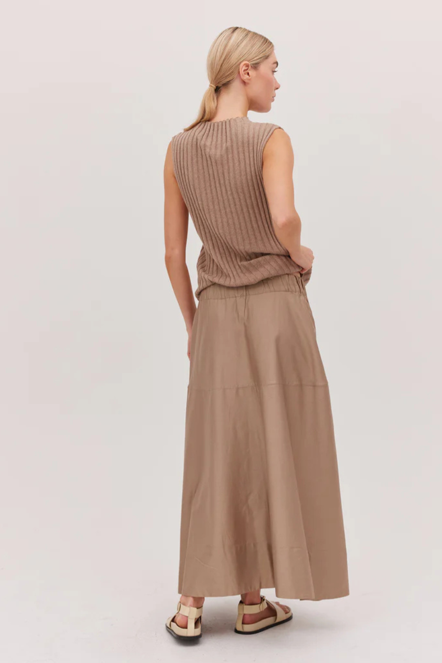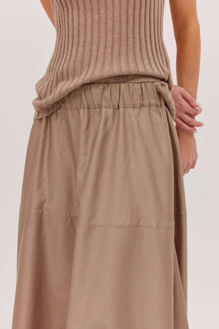 Introducing The Maxi Skirt, a voluminous silhouette, that is lightweight yet perfectly dramatic. Crafted from 100% Giza cotton, this skirt offers a luxurious glow and elegant drape. A maxi-length with flat pockets, elastic high-waist and french seams.