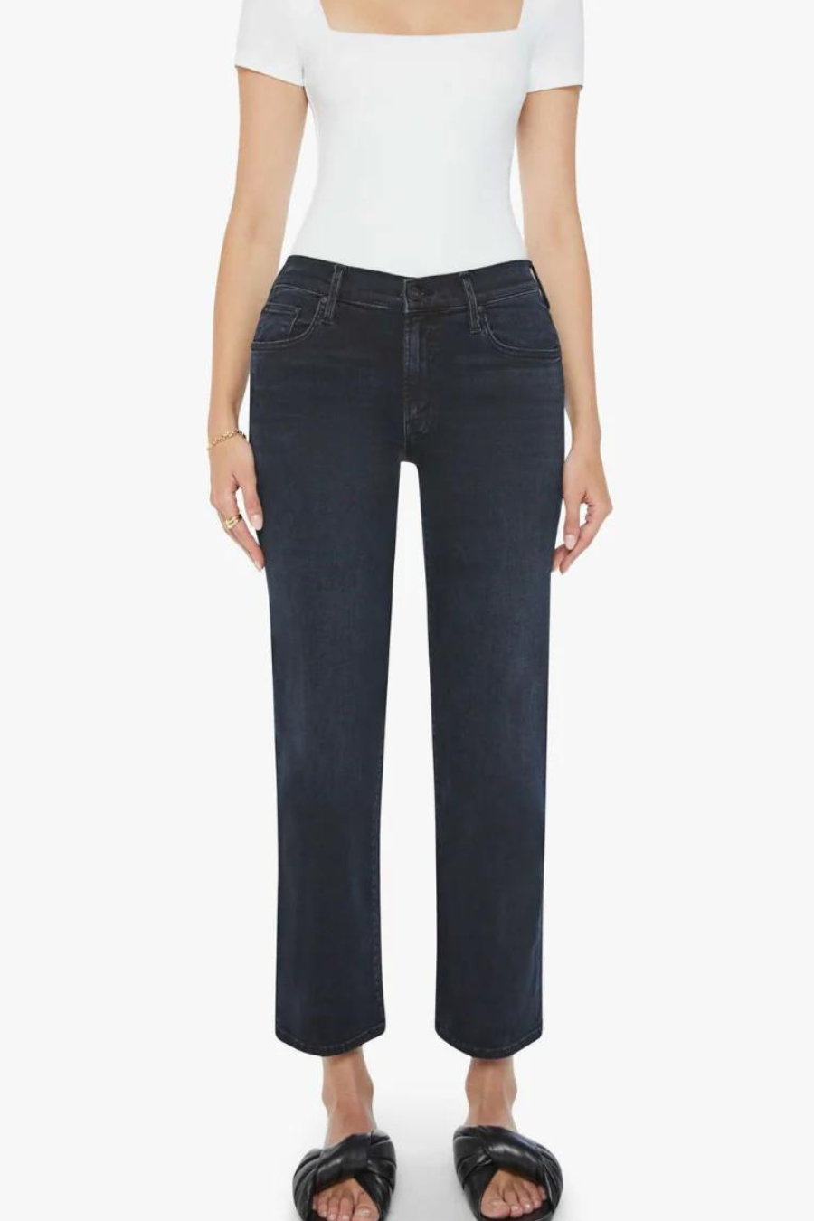 Mid-rise jeans with a wide straight leg, zip fly and clean ankle-length inseam.