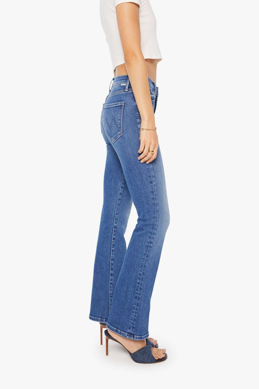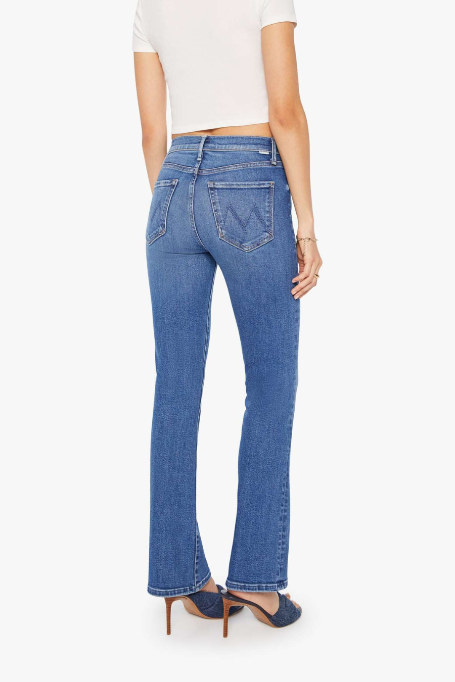 Bench warmers. Narrow flare jeans with a mid rise and a long 31-inch inseam with a clean hem. Made from stretch denim, Dugout Doobies is mid blue with whiskering and fading at the knee.