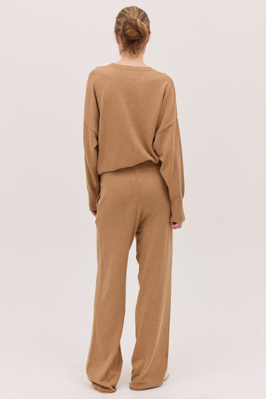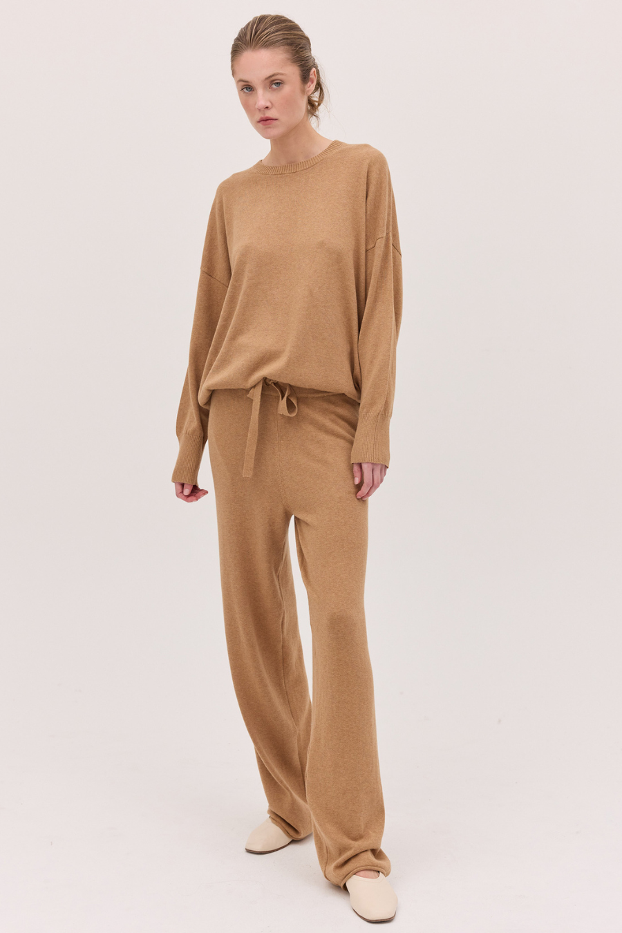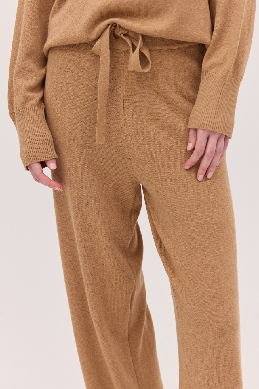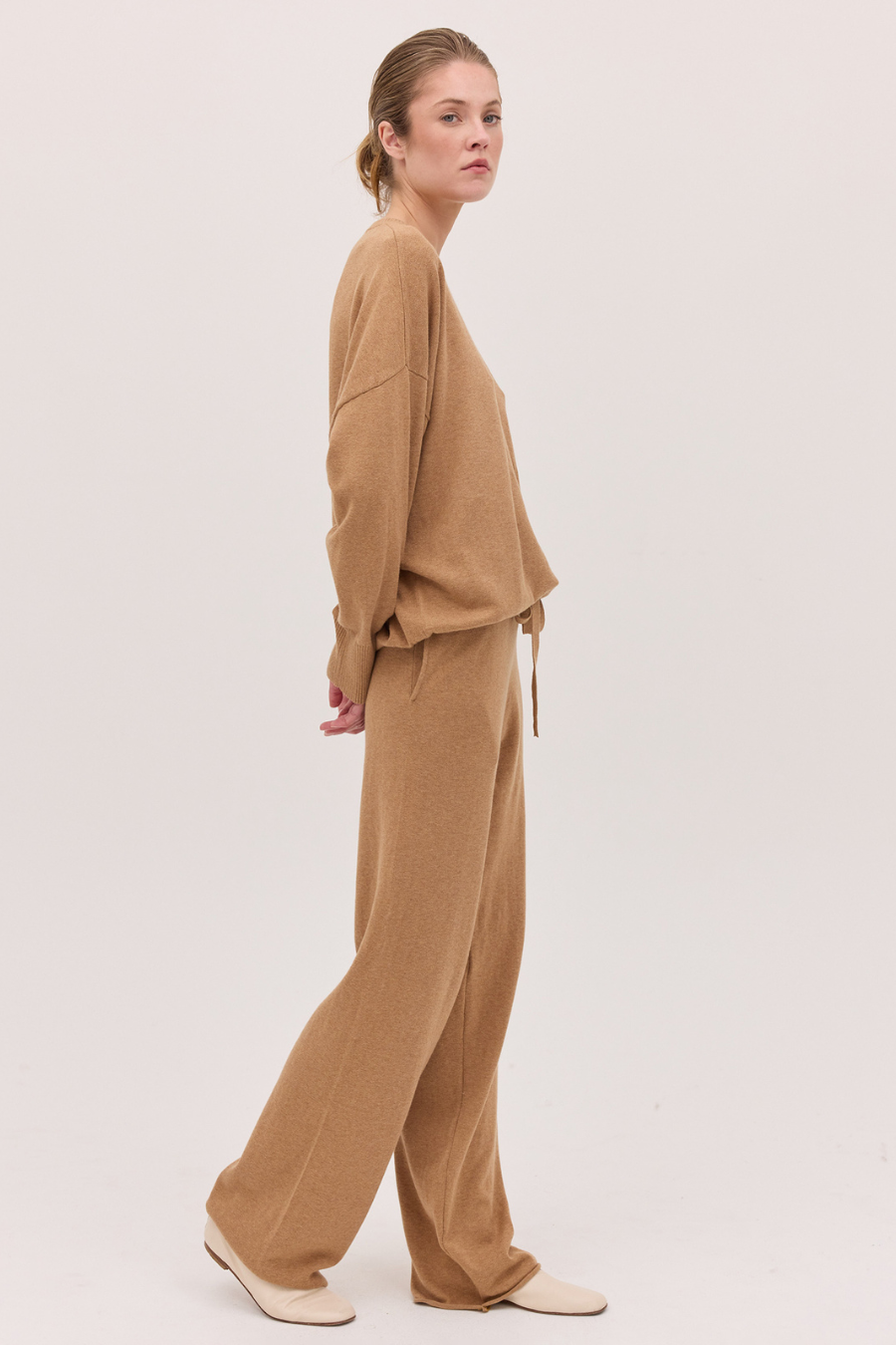 Crafted from a soft, luxurious blend of 95% organic cotton and 5% cashmere, these travel pants offer ultimate comfort with an elastic waistband and drawstring. Perfect for long journeys or laid-back days, combining effortless style with cozy softness.