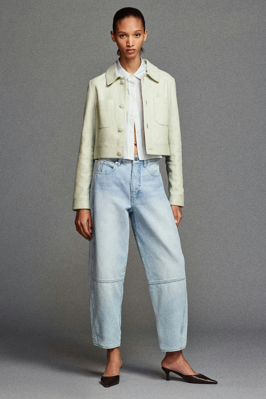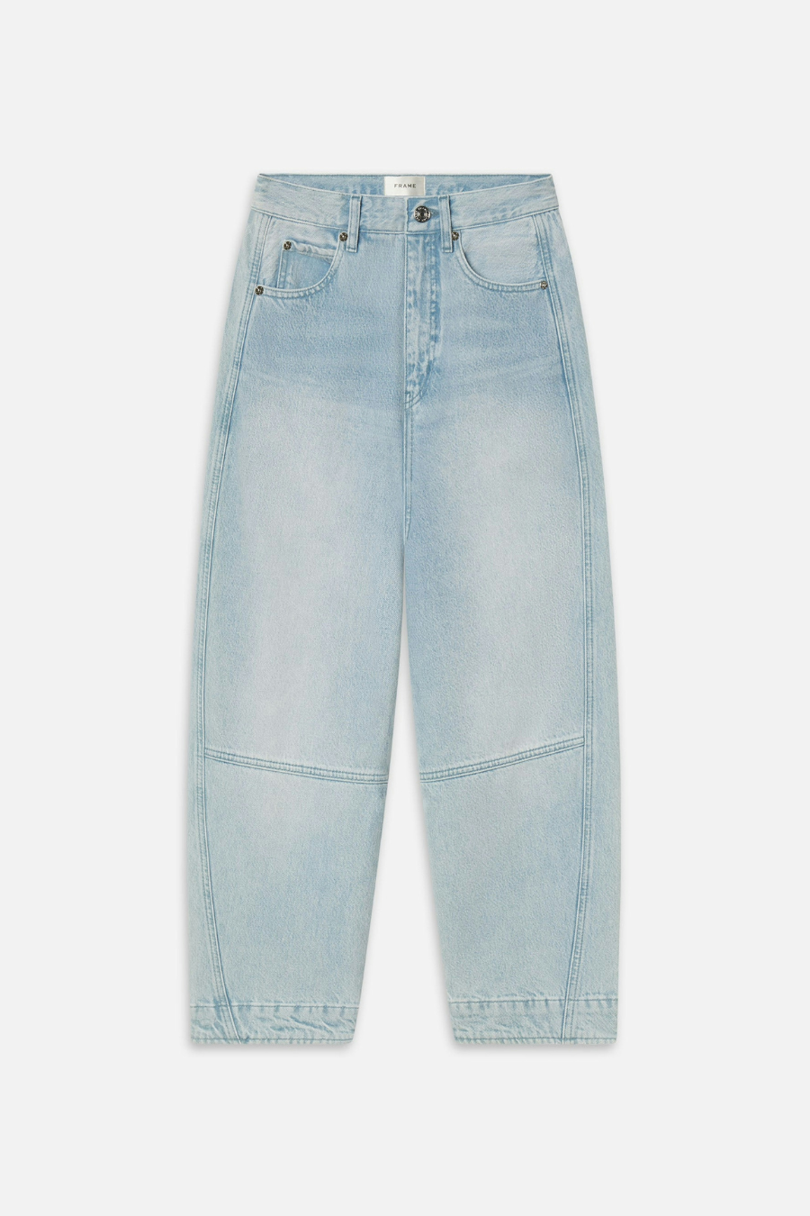 A mid-rise jean with an artful curve. The Twisted in light blue features a sculpted outseam, utility-inspired knee seaming, and an ankle-length inseam. Crafted from 100% regenerative cotton that wears in with time and character.