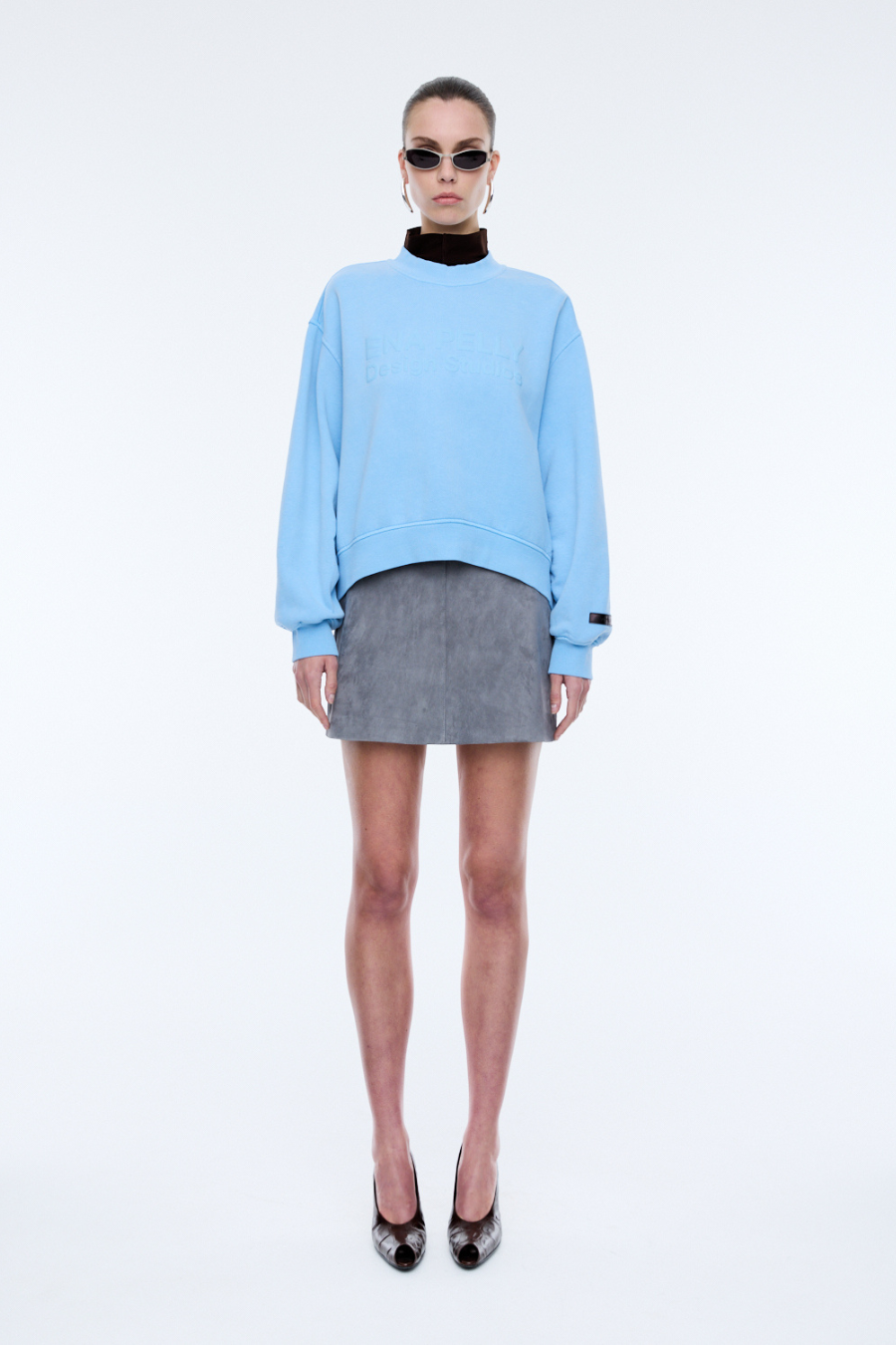 The Timeless Sweatshirt is crafted from super soft brushed cotton fleece, featuring an oversized cropped silhouette and blouson sleeves for a relaxed fit. A tonal Ena Pelly puff logo adds subtle character, while the vintage-style wash and ribbed neckband and cuffs lend a refined, on-trend finish.