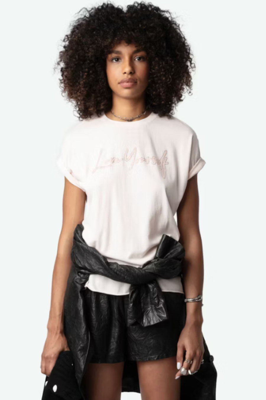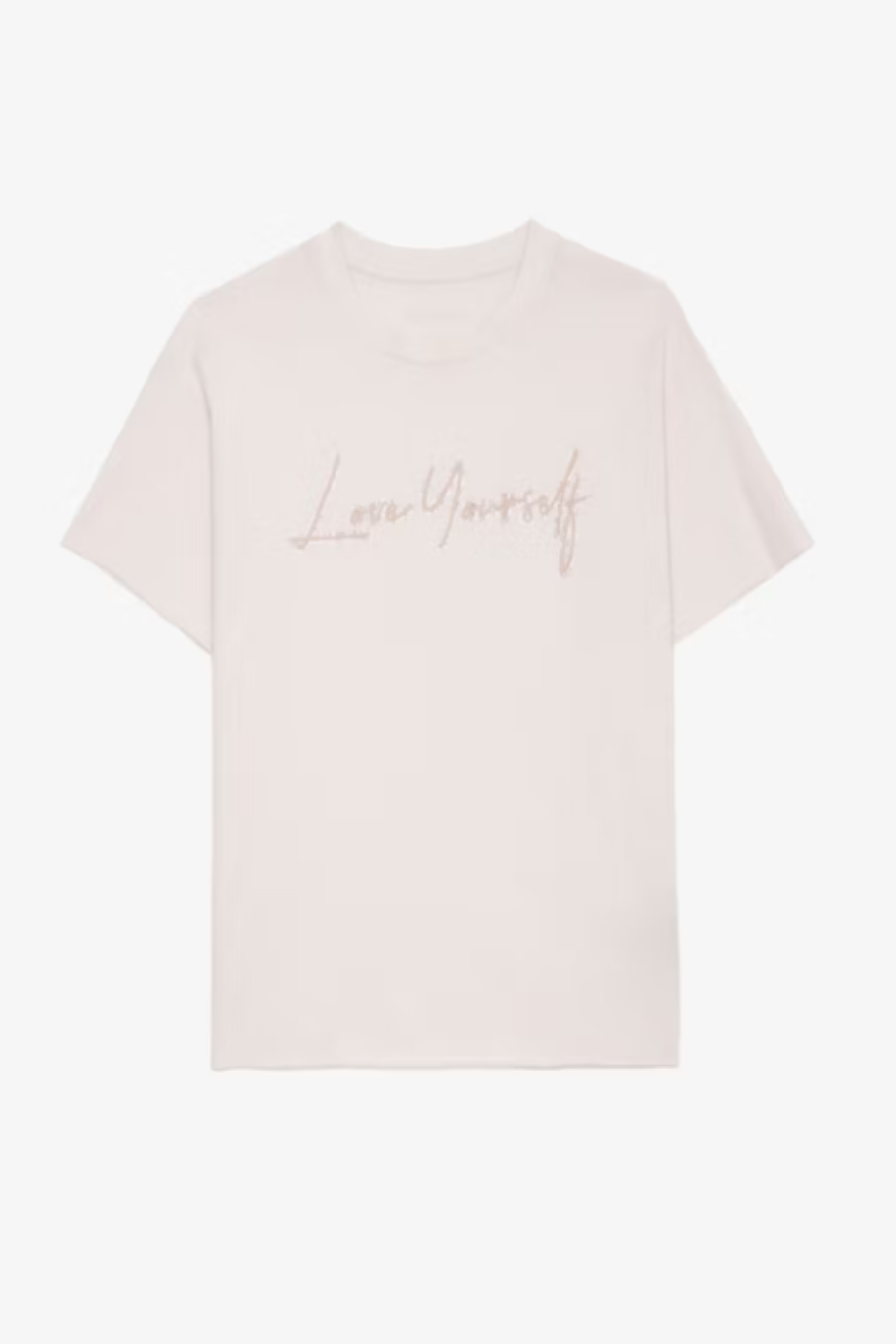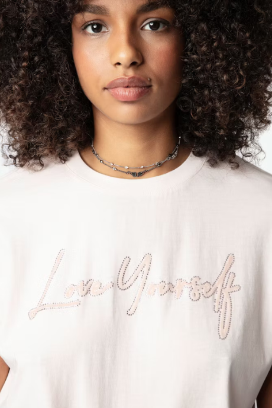 - Flocked "Love Yourself" message embellished with diamanté on front