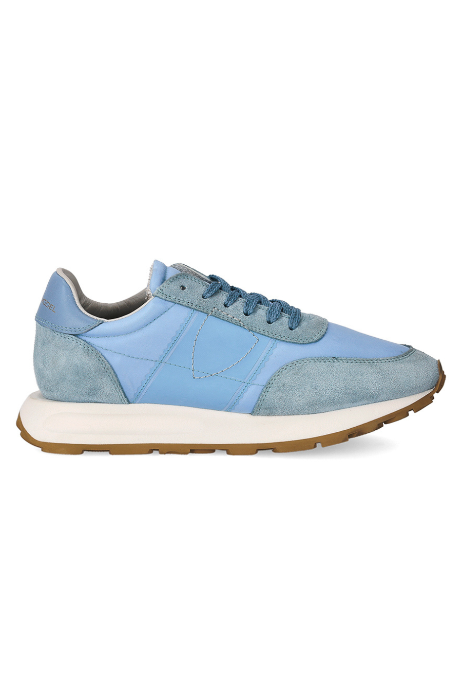 With a design inspired by vintage running models, the Tour sneaker proposes a new concept of sporty chic footwear for the city. The light blue technical fabric and suede upper is complemented by heat-sealed and rubber finishes that add a dynamic touch and an embossed tone-on-tone shield on the side. The removable padded insole and the ultra-light contoured rubber running sole complete the model, ensuring comfort all day long.
