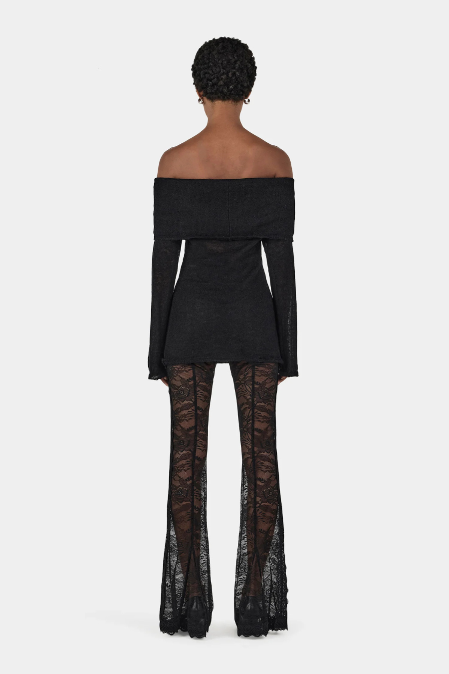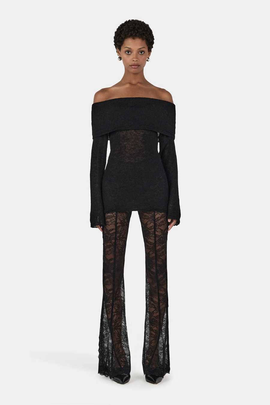 The Tozzi Knit is a gorgeous take on a regular knit. It features a fold over, off the shoulder neckline and a fitted body which is longline to cover the hip. The sleeves have a slight flare and is fabricated in a beautiful wool mohair blend.