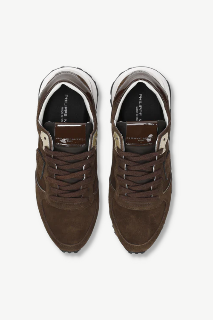 Blending Parisian elegance with sporty edge, the Tropez Haute Low Woman sneakers in Daim Brun offer a rich, tonal take on casual luxury. Crafted in Italy from premium brown suede with subtle contrast stitching and patent leather heel detailing, these sneakers provide both style and comfort. The lightweight sole ensures a cushioned stride, making them perfect for all-day wear while elevating any everyday look with understated sophistication.
