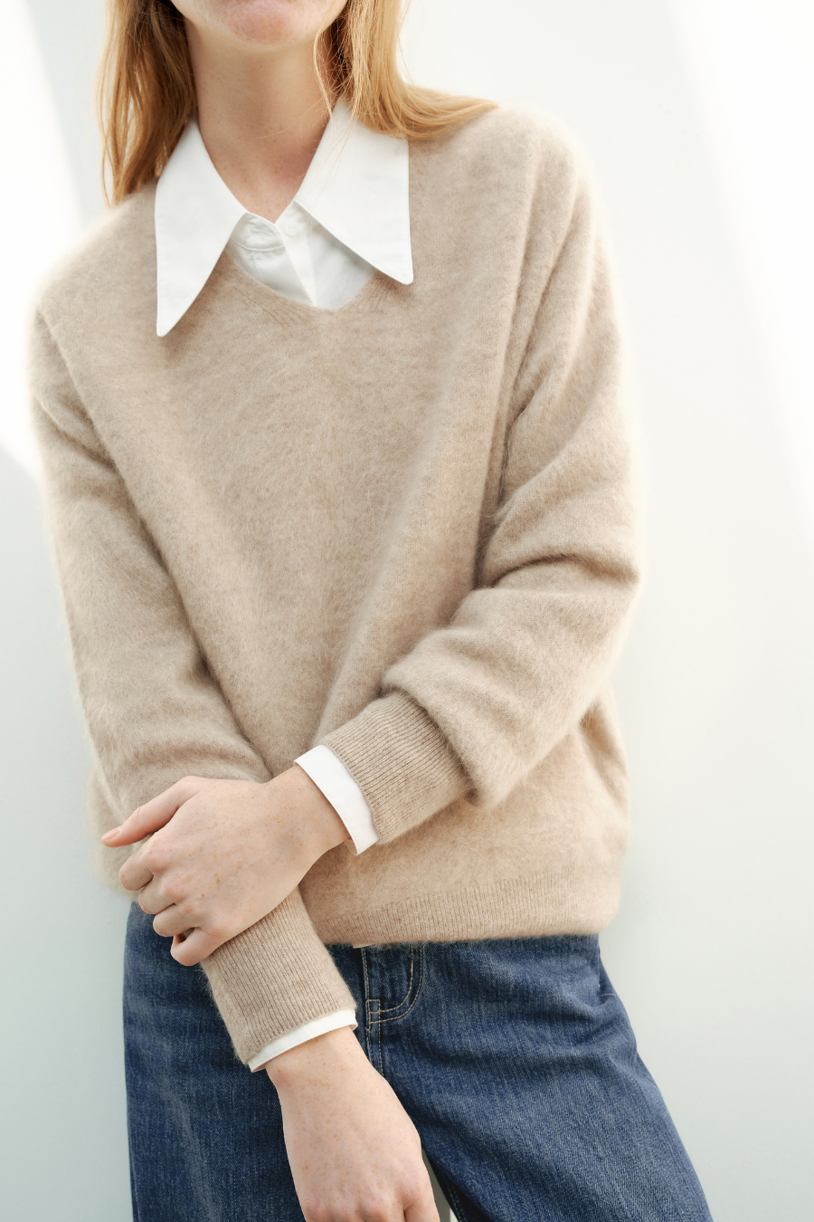 V Neck Cashmere Sweater Raw Velvet Brown