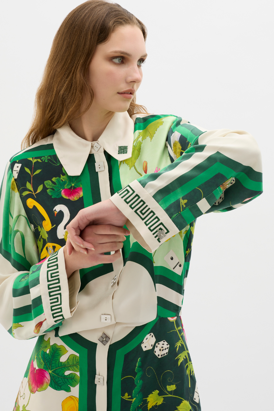 The Versailles Shirt Dress s is crafted in a vegan cupro blend that invokes the smoothness of silk. With each feature convening beautifully to create a tailor-inspired piece, with elegant square cuffs and signature Muma buttons, we establish a defining and luxurious finish, while removable shoulder pads above a classic shirt collar express a feminine power look not to be contended with. Sporting a long-sleeved, mini silhouette, this time-honoured fit is a straight cut with button fastenings down the midline and a subtle flare at the skirt. Invisible elastic comes in at the small of the back to invite the wearer to don the garment as they choose. Wear it as a dress, or buttoned down as a smoking-jacket-esque overcoat.