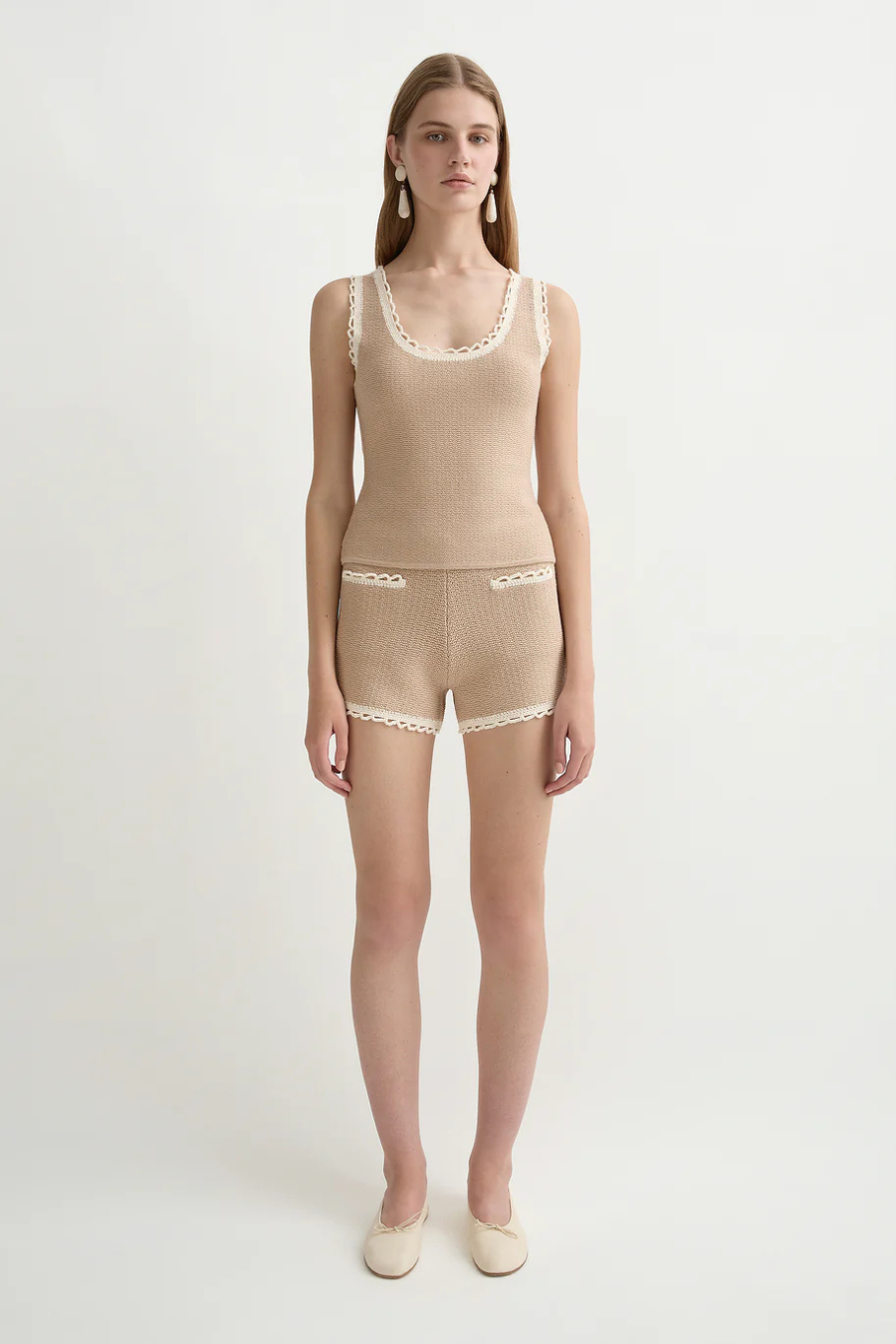 Crafted from soft knit, the Willow Shorts are traced with contrast scallop detailing. Designed to sit high on the waist, they feature front patch pockets.