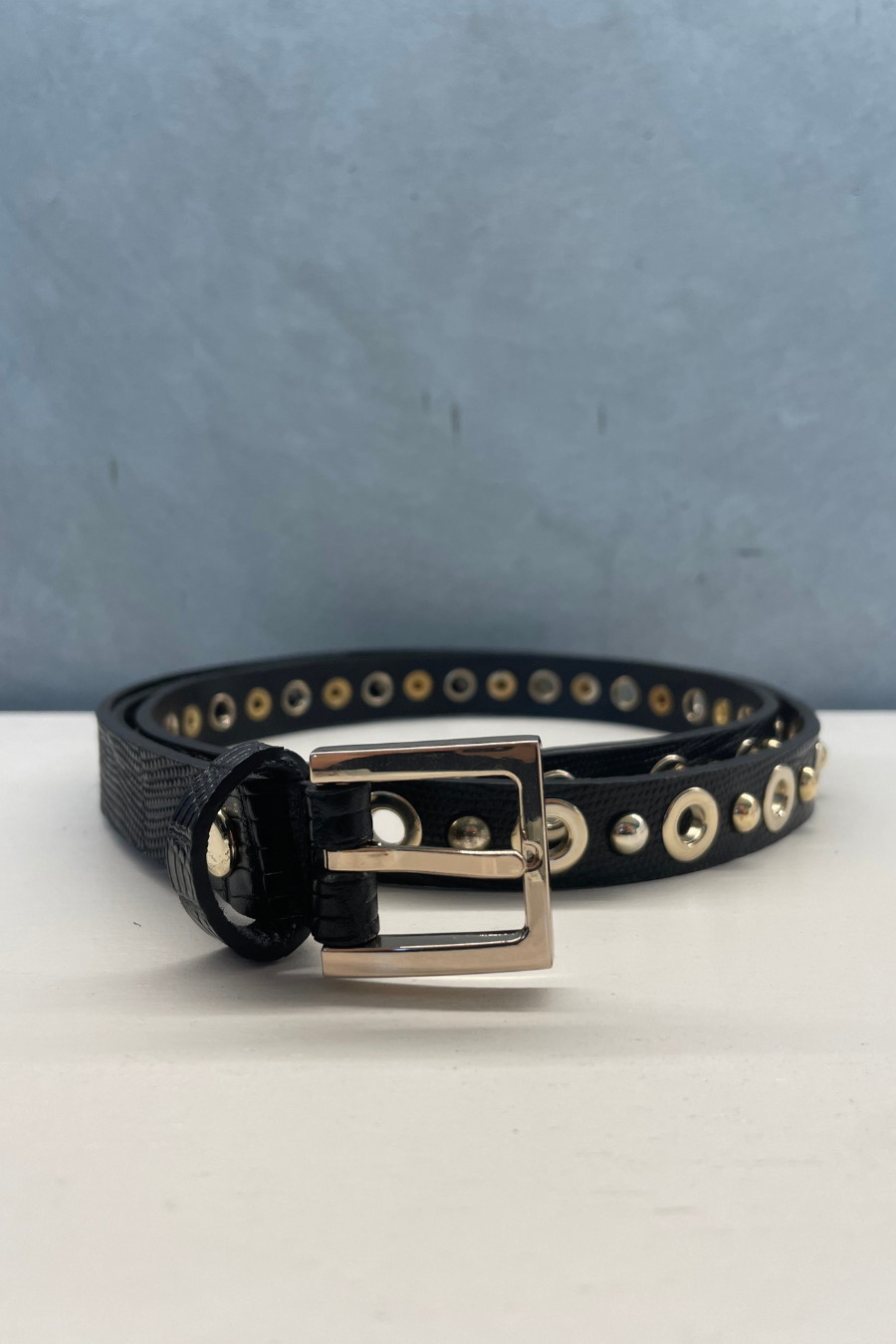 Crafted from supple leather, the exclusive Zoe Belt will instantly add some style to your outfit. Featuring silver-tone stud detailing, buckle fastening, and adjustable fit.